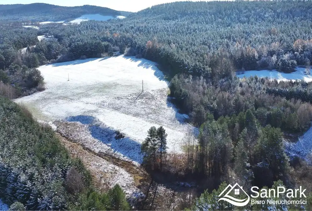 Wyjątkowa działka budowlana bez sąsiedztwa, położona wśród lasów – idealna dla osób ceniących absolutną prywatność.