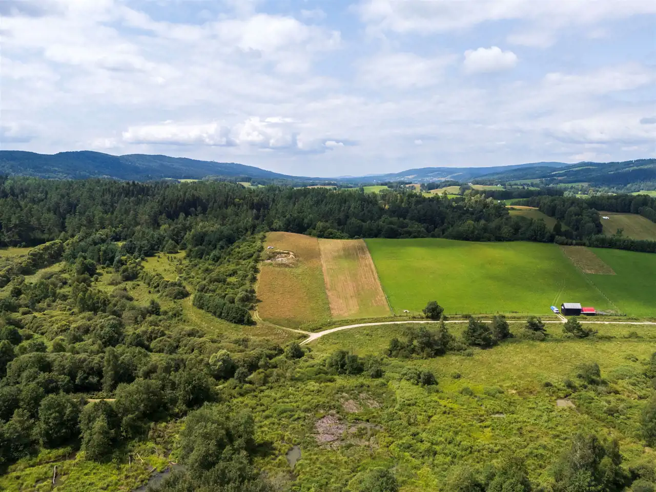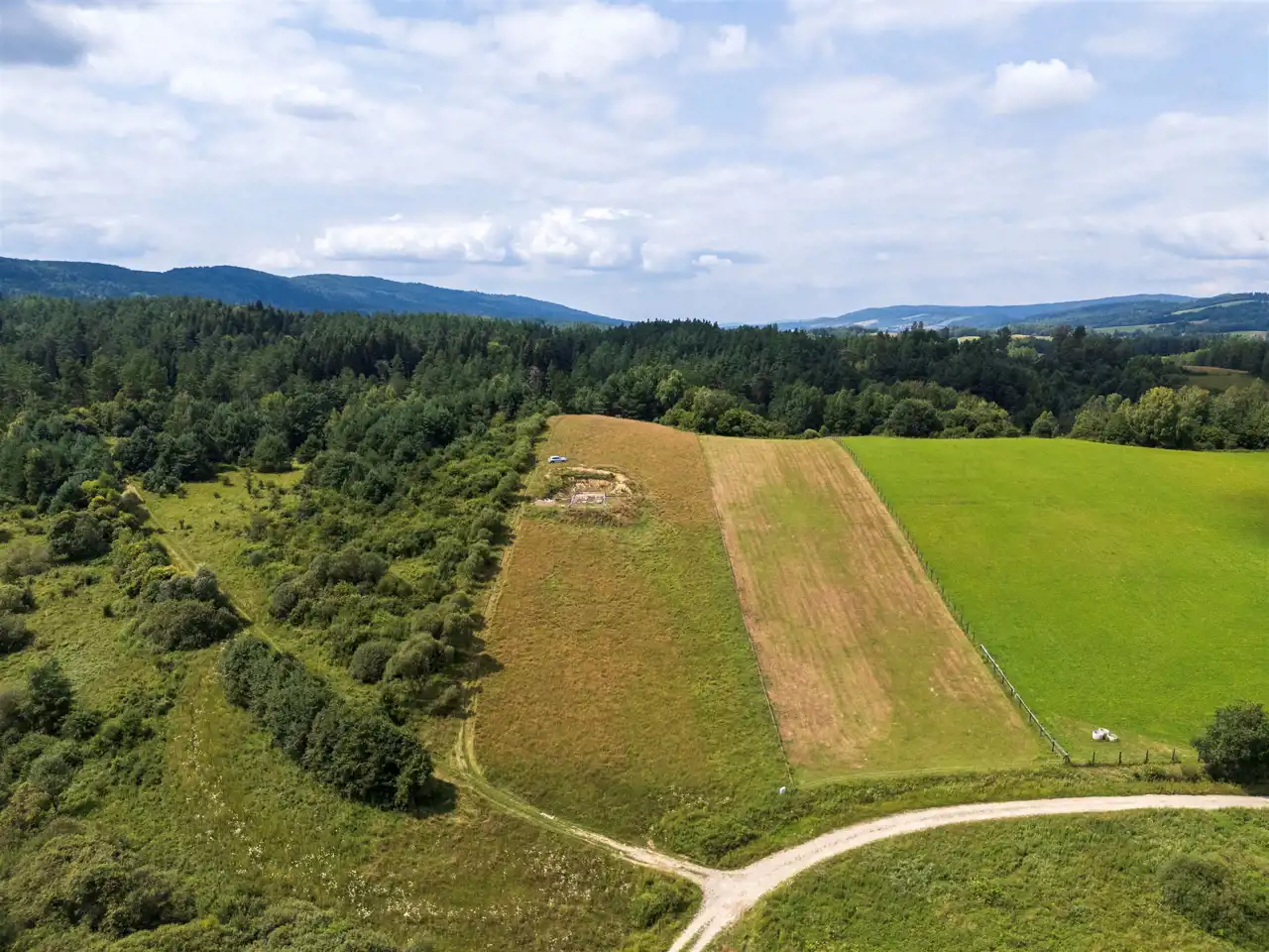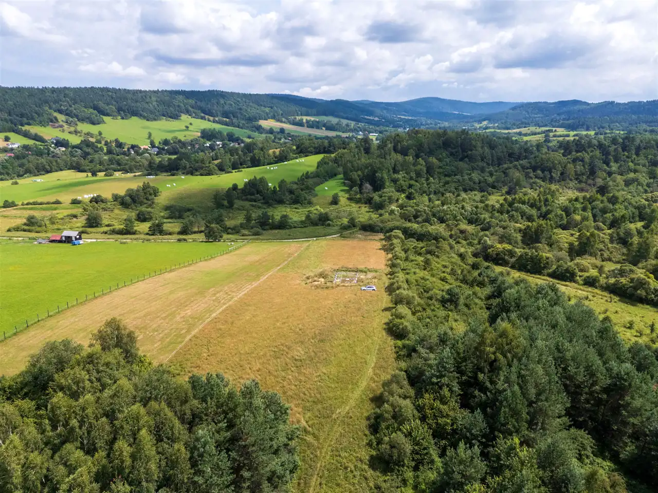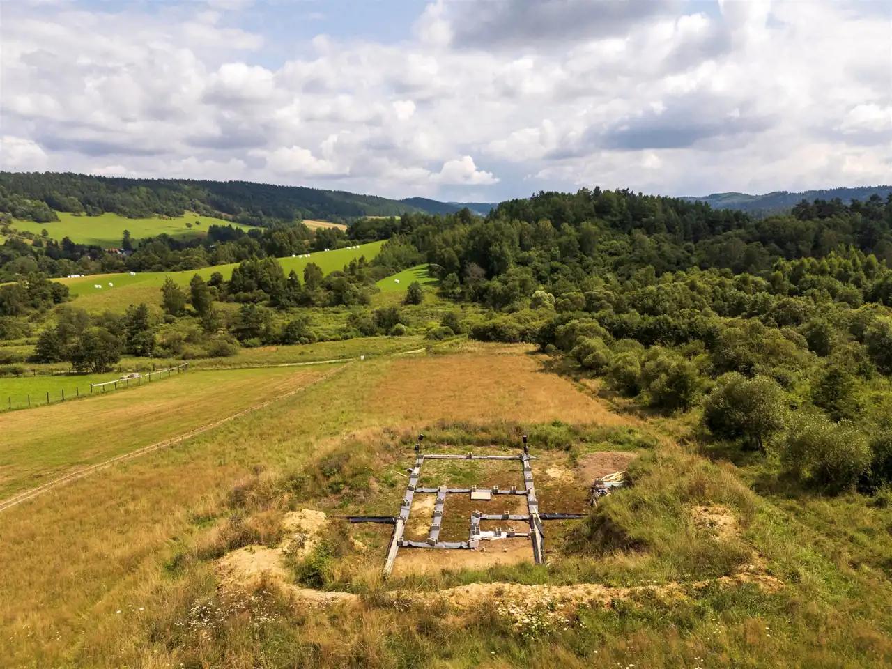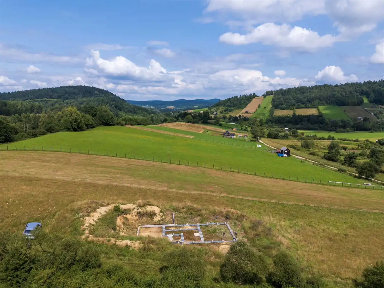 Na sprzedaż działka budowlana o pow. 1,0416 ha z wydaną decyzją pozwolenia na budowę budynku mieszkalnego jednorodzinnego wraz z projektem budowlanym na dom o pow. zabudowy 148,18 m2, pow. użytkowa 199,47 m2. Budowa budynku została rozpoczęta. Budynek nawiązuje do tradycyjnej zabudowy i zaprojektowany został jako niski w części ,, wkopany w stok,, dom wolnostojący parterowy z użytkowym poddaszem, niepodpiwniczony w układzie:
