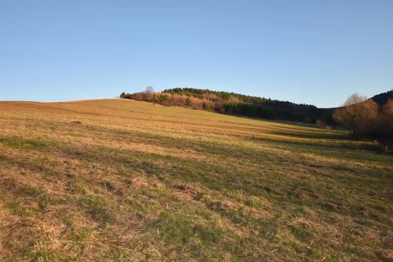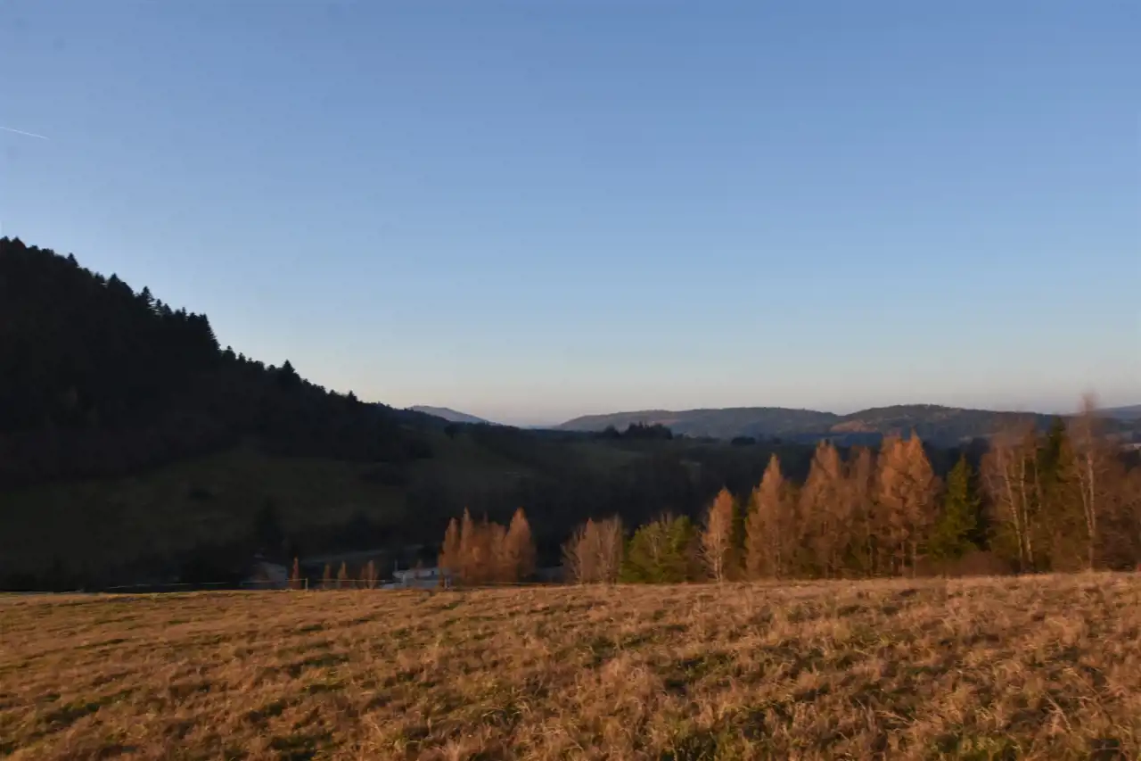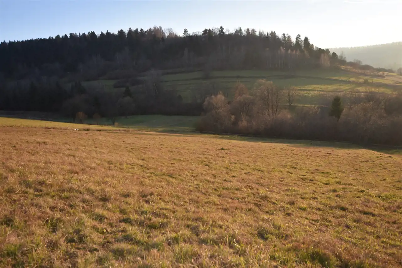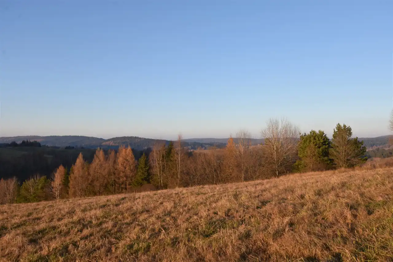 Działka położona na wzniesieniu z bardzo ładnymi widokami na lasy , nachylona w kierunku południowo-zachodnim.