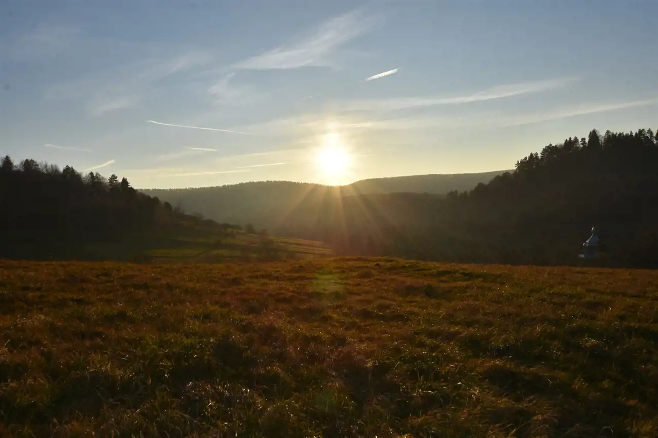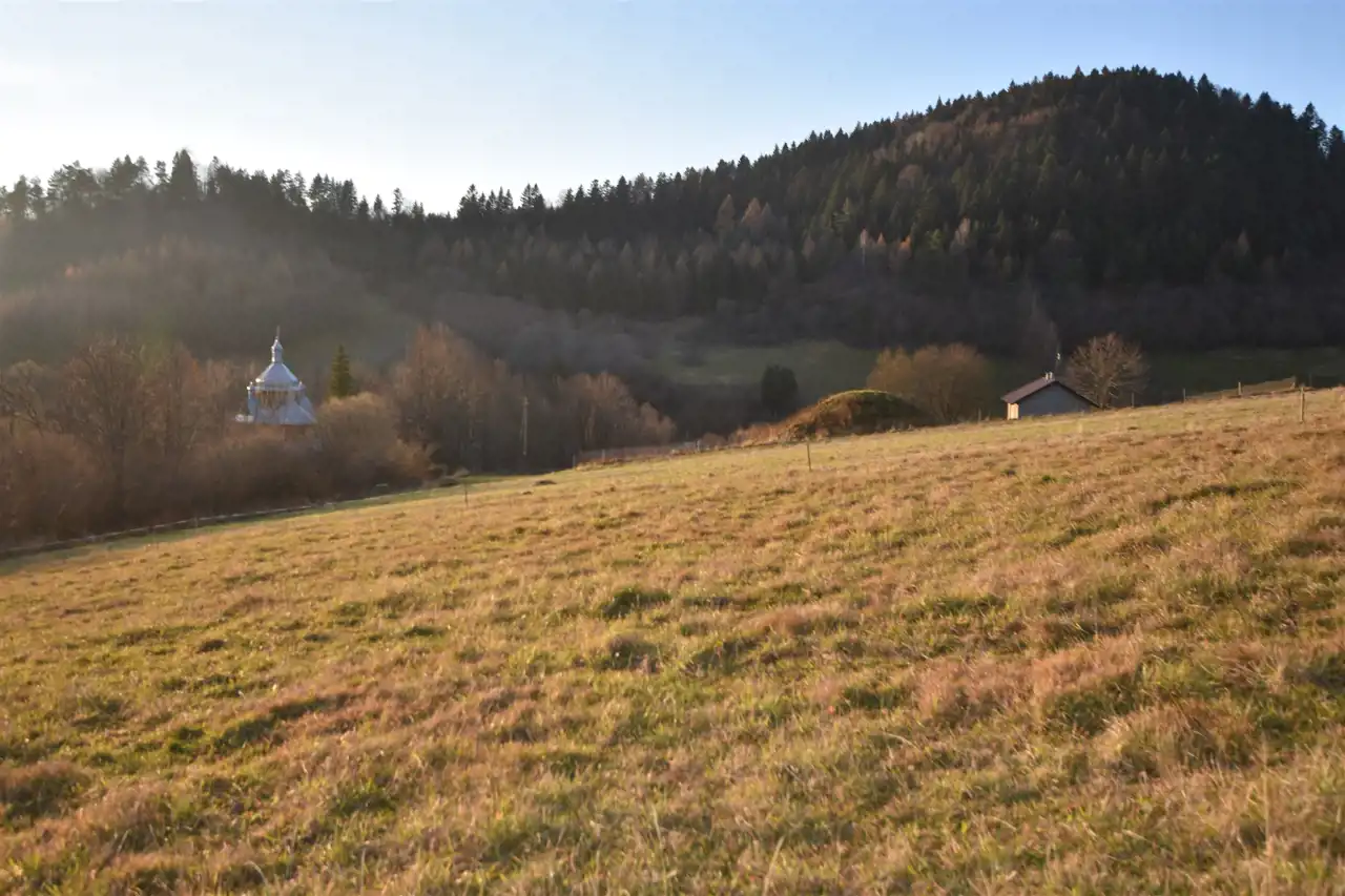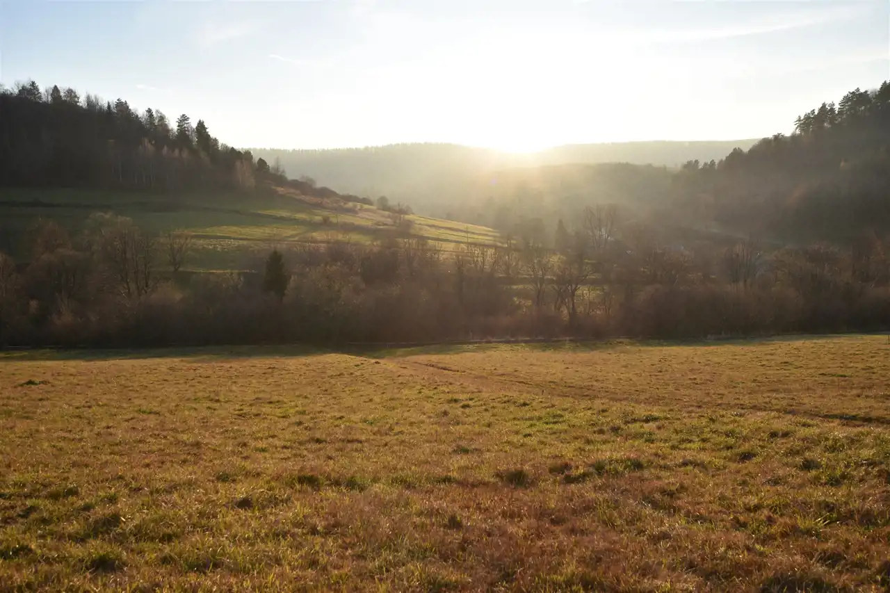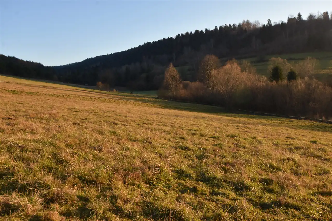 Działka położona na wzniesieniu z bardzo ładnymi widokami na lasy , nachylona w kierunku południowo-zachodnim.