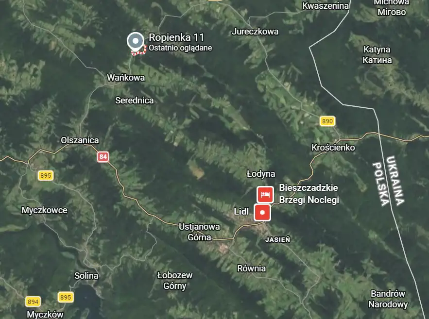 - Adres podkarpackie, Ustrzyki Dolne (gw), Ropienka