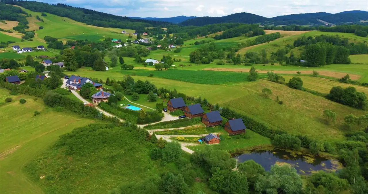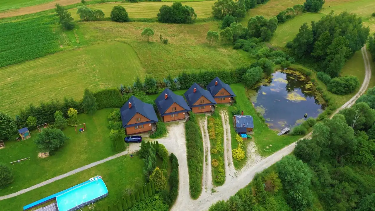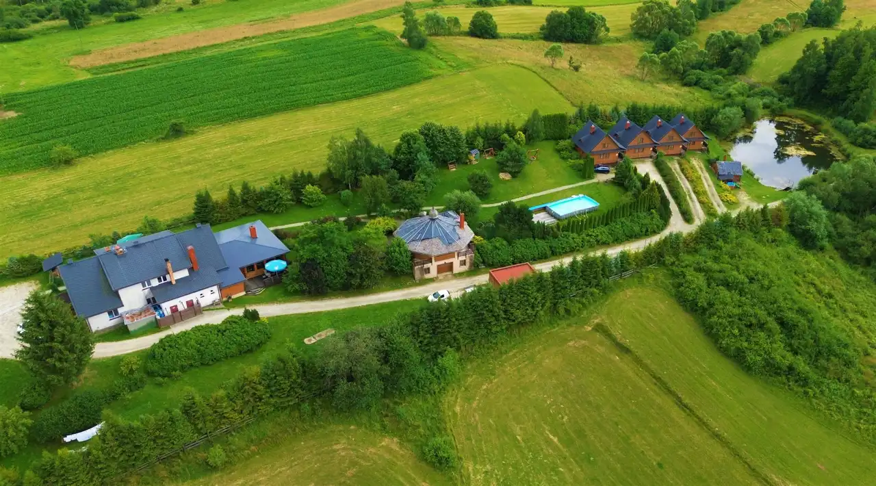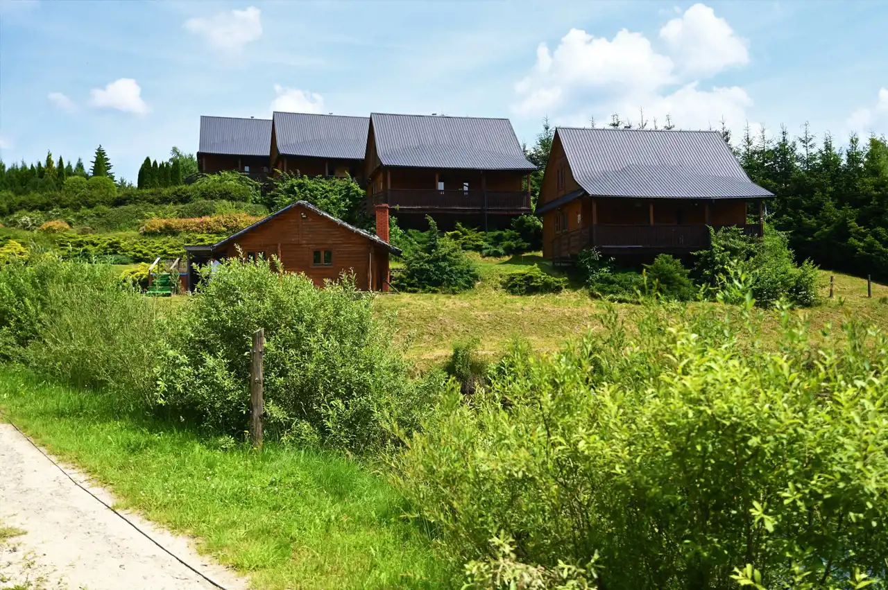 Na posesji są zlokalizowane tzw. chaty karpackie tj. 5 domków, o pow. użytkowej ok. 91 m2 każdy, wykonanych w konstrukcji drewnianej, z werandami, krytych wiórem osikowym, z salonem kominkowym, aneksem kuchennym i łazienkami w glazurze, wyposażonych w umywalki, kabiny prysznicowe i w.c. W chacie – TV SAT, Internet bezprzewodowy i telefonia wewnętrzna. Ogrzewanie kominkowe z rozprowadzeniem. Dogrzewanie – kaloryfery elektryczne –olejowe. W chacie można kwaterować od 9 do 12 osób.