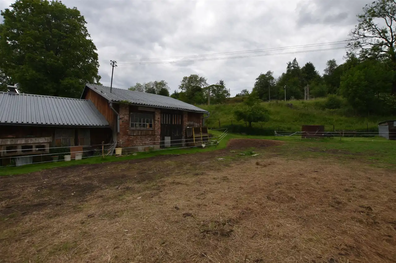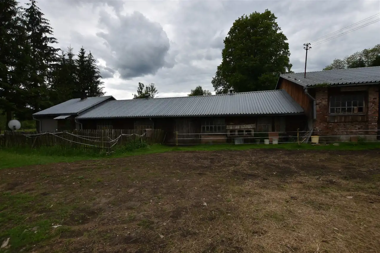 Przedmiotem sprzedaży są 3 budynki: 2 gospodarcze oraz mieszkalny położone na działce o pow. 4397 m2 w użytkowaniu wieczystym oraz działka przyległa o pow. 1632m2 będąca własnością.