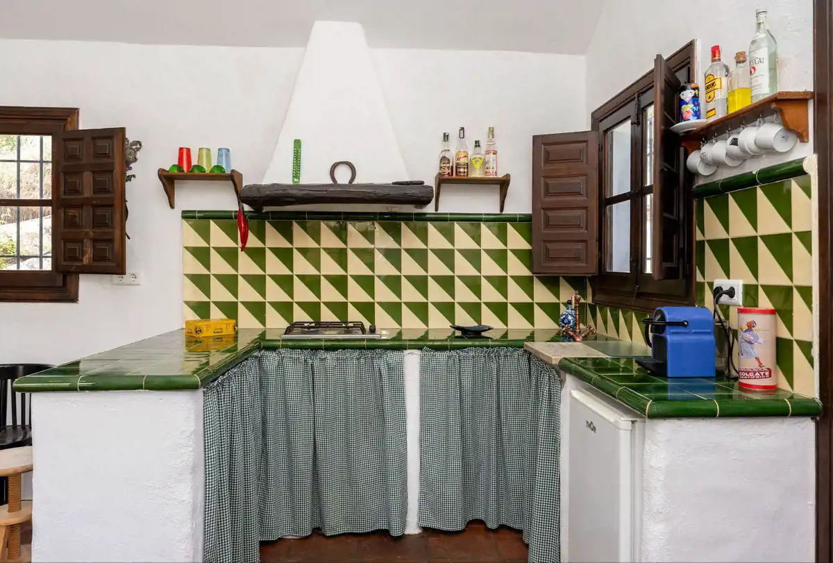 Składa się z sypialni, łazienki z prysznicem i małej kuchni/salonu na otwartym planie z palnikiem na drewno.