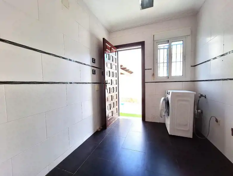 W domu znajdują się trzy duże sypialnie, w pełni wyposażona łazienka oraz pralnia, którą można zamienić na drugą łazienkę, dostosowując się do potrzeb przyszłych właścicieli. Na terenie posesji znajduje się prywatny basen zamknięty o aluminiowej konstrukcji, gwarantujący prywatność i bezpieczeństwo. Pięć lat temu przeprowadzono kompleksowy remont, całkowicie wymieniając instalacje wodną i elektryczną, co zapewnia nowoczesność i funkcjonalność domu. Dodatkowo fundament przygotowany jest pod ewentualną rozbudowę drugiego piętra, co zapewnia doskonały potencjał wzrostu. Nieruchomość ta łączy w sobie komfort, nowoczesność i potencjał rozbudowy w uprzywilejowanej lokalizacji. Nie przegap okazji, aby go odwiedzić i odkryć wszystkie jego możliwości!