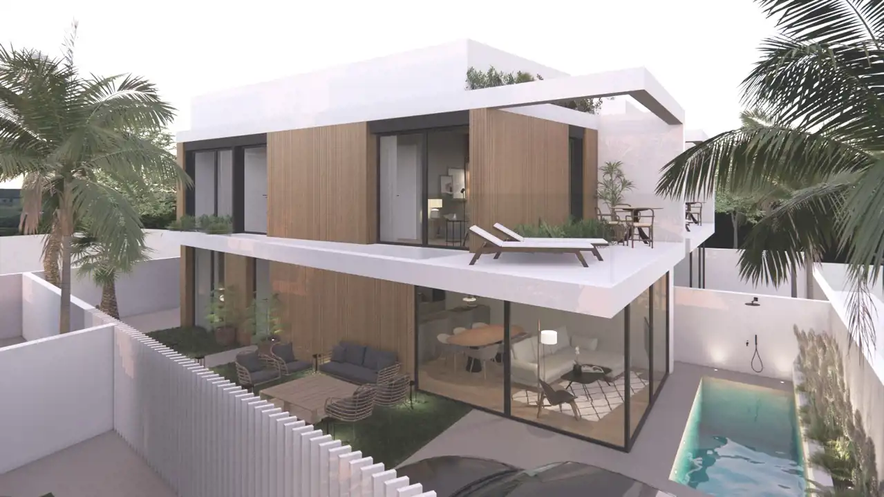 Wille mają współczesny wystrój i są podzielone na dwa piętra plus solarium, z 3 sypialniami i 3 łazienkami. Na działce znajduje się prywatny basen i parking. Ponadto, jeśli potrzebujesz więcej miejsca, wille mają opcję piwnicy.