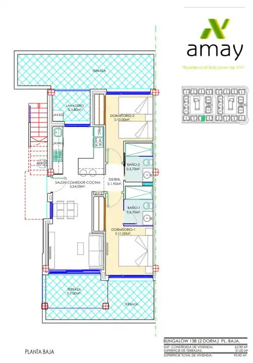 BALCONES DE VIVI to zupełnie nowy projekt, który znajduje się na zboczu wzgórza ze wspaniałymi widokami na różowe słone jezioro. Projekt składa się ze 104 mieszkań. W fazie I, która jest obecnie na sprzedaż, znajdują się 52 mieszkania, 28 z 2 sypialniami i 24 z 3 sypialniami.