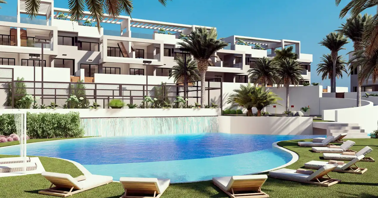 Możesz wybierać między parterowymi bungalowami z 2 dużymi prywatnymi tarasami, aby cieszyć się klimatem Costa Blanca lub bungalowy na pierwszym piętrze o powierzchni 178 m2 z solarium z panoramicznym widokiem na Różową Lagunę i Morze Śródziemne Do każdego domu przynależy duży parking podziemny oraz komórka lokatorska.