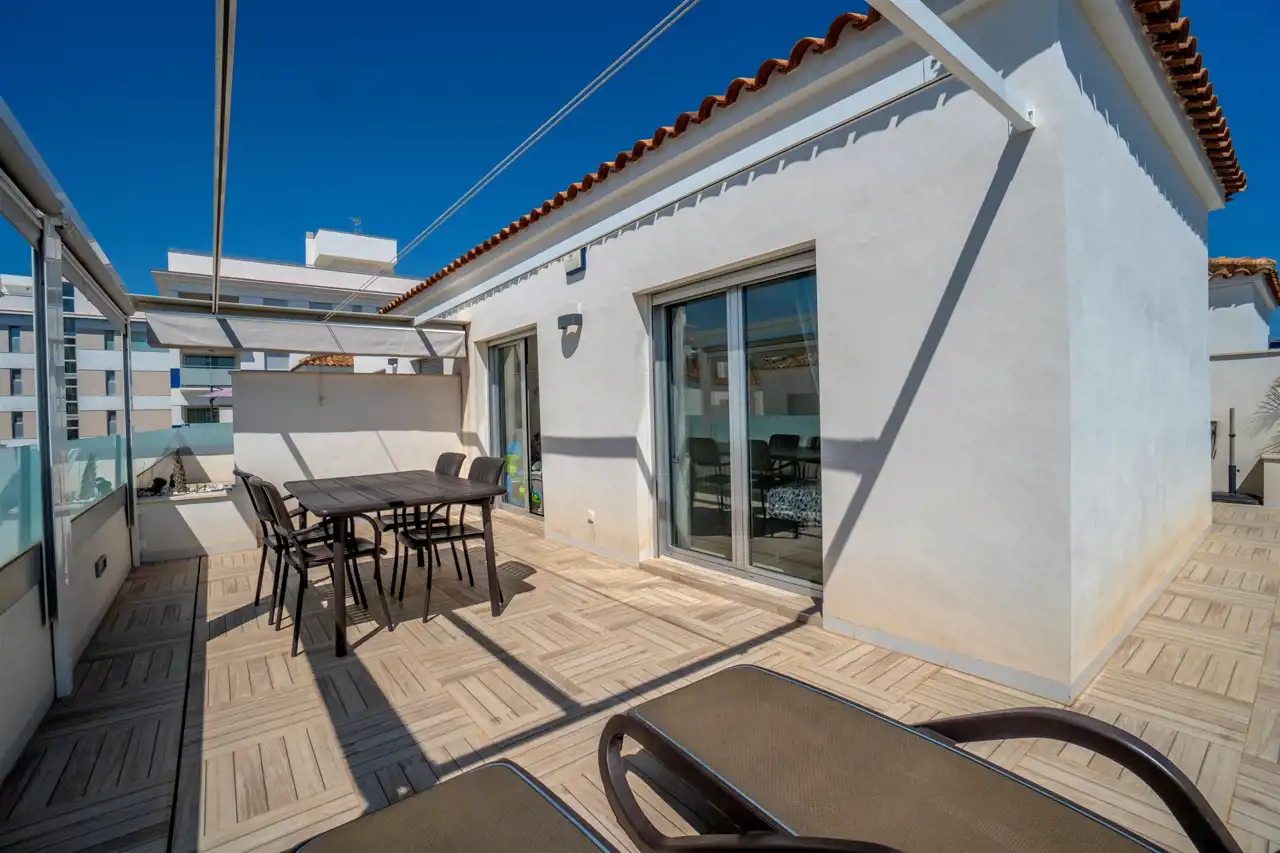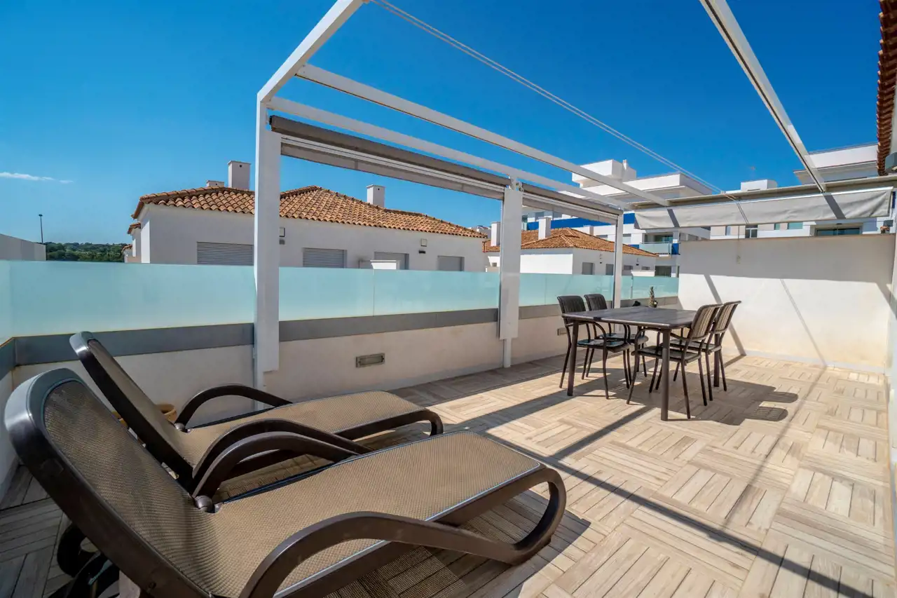 Prawie nowy dom na osiedlu z basenem. Posiada dużą powierzchnię tarasową włącznie z tarasem-solarium.