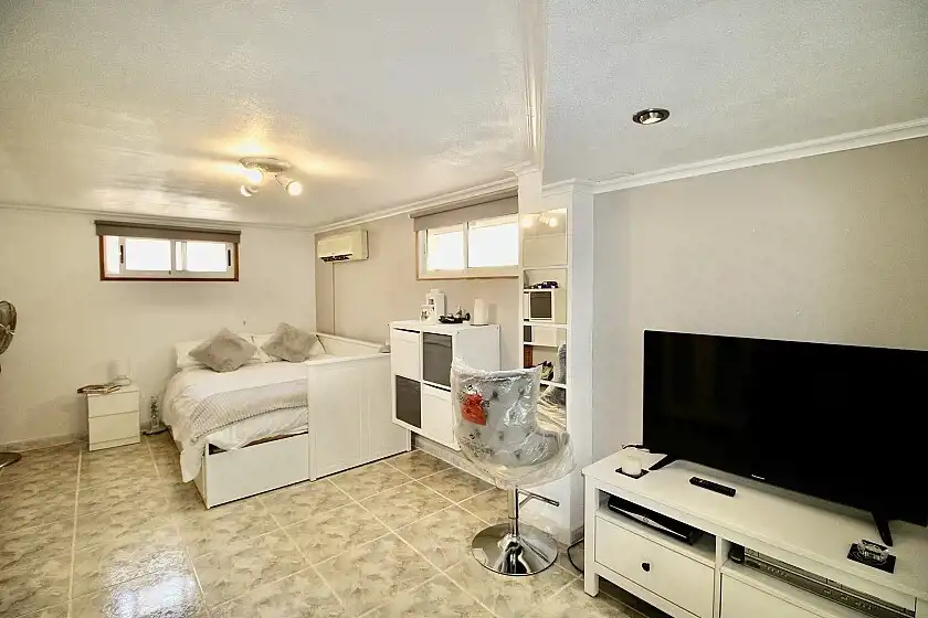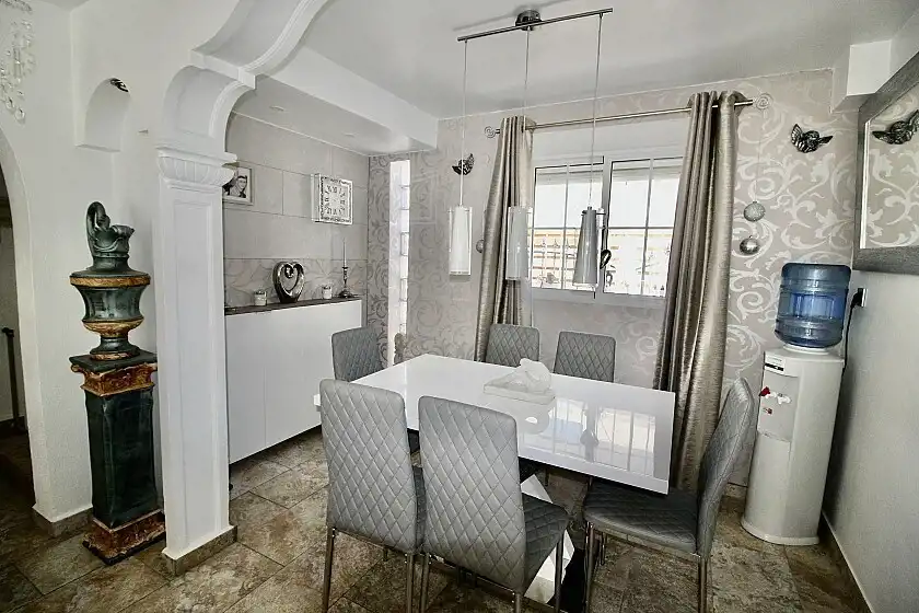 Odnowiona niezależna willa z 4 sypialniami i 3 łazienkami z dużym ogrodem z prywatnym basenem, barem i parkingiem w ogrodzie. Ta willa z ekspozycją na południowy wschód jest sprzedawana w pełni umeblowana i wyposażona we wszystkie sypialnie z ciepłą/zimną klimatyzacją. Blisko wszystkich usług, międzynarodowej szkoły El Limonar, Plaza de Villamartín i czterech pól golfowych. Znajduje się 10 minut jazdy samochodem od plaż i zatoczek Orihuela Costa.