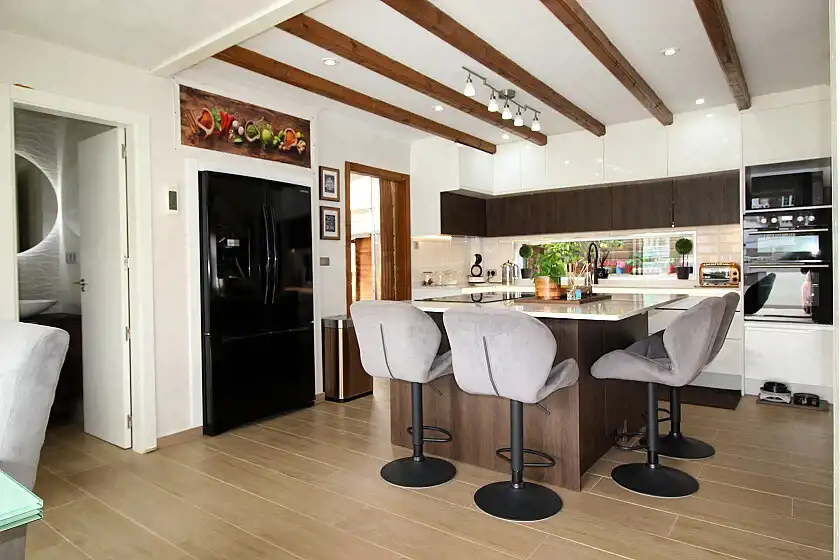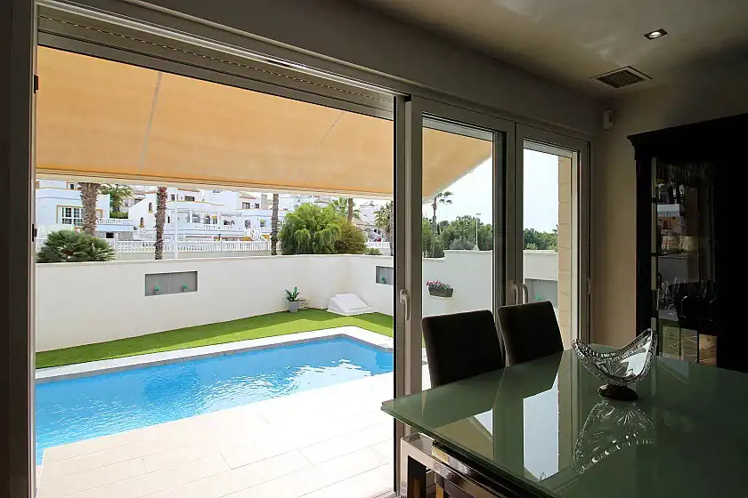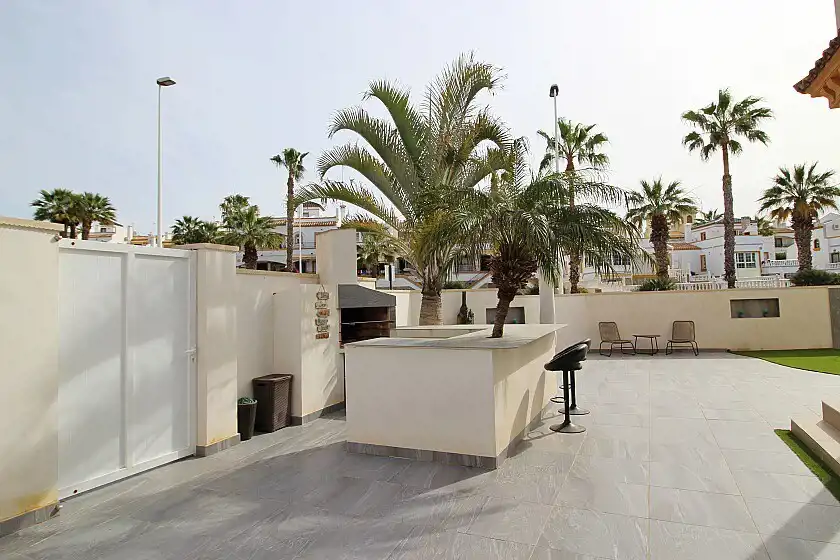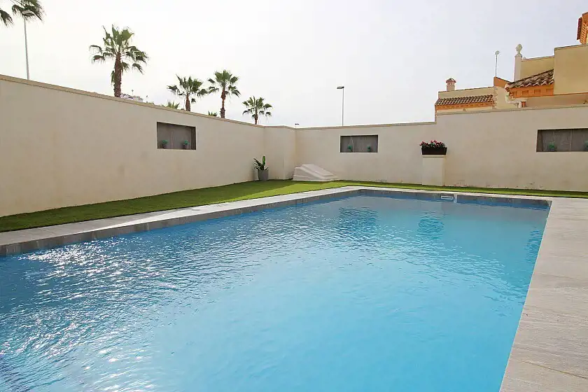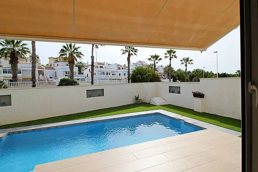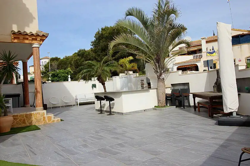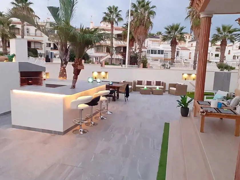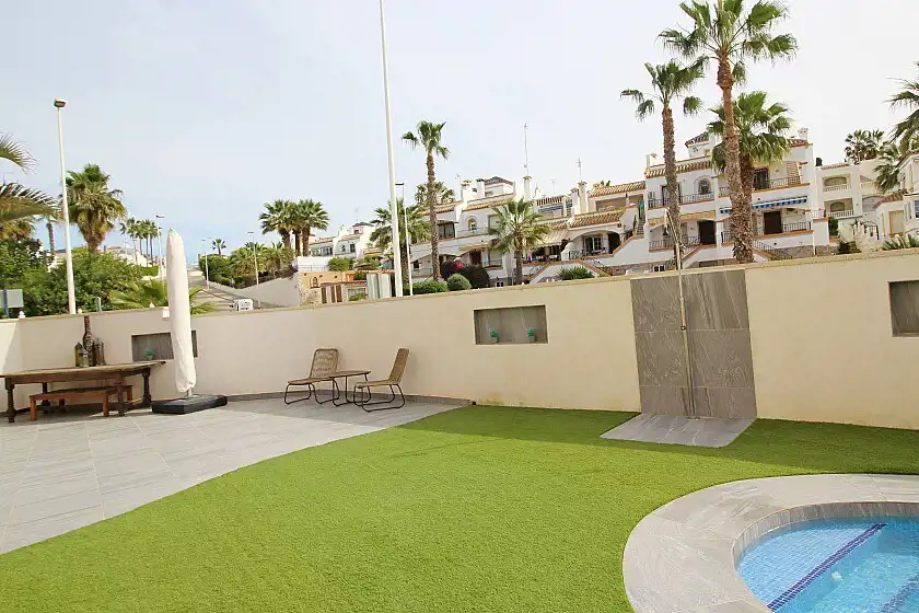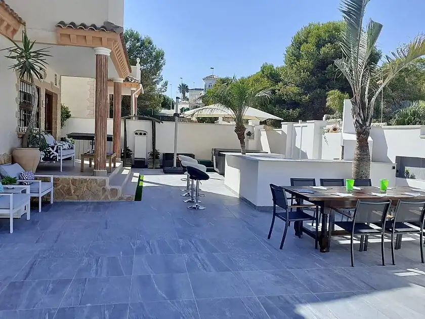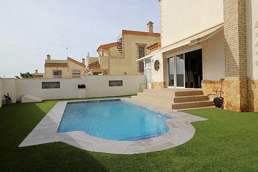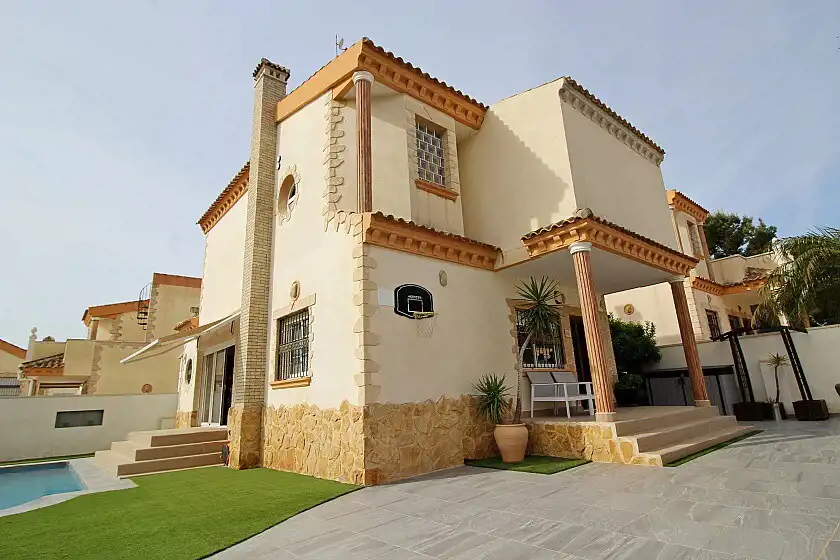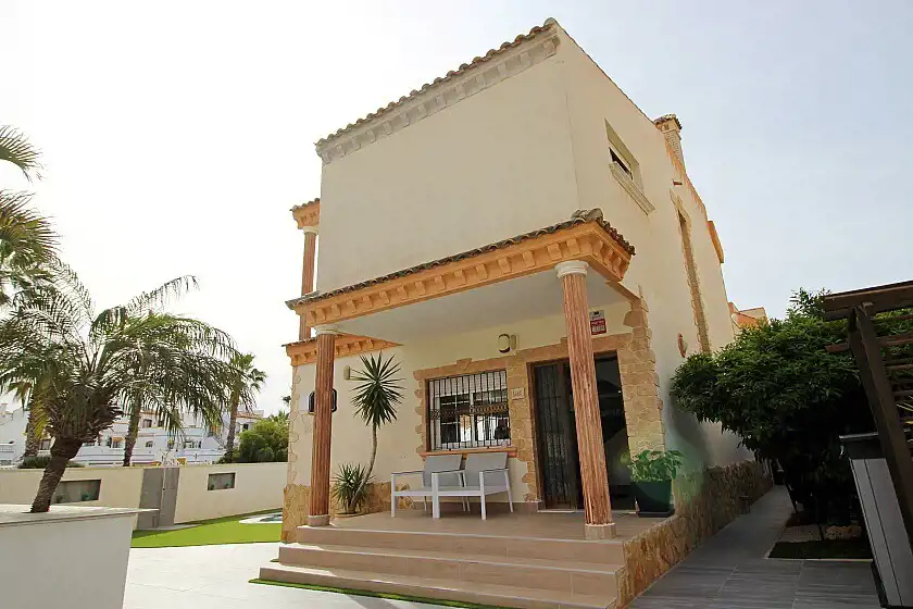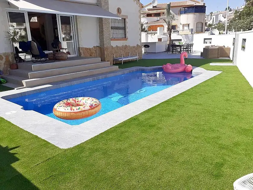 Przestronna willa z 3 sypialniami, ogrodem i basenem w Villamartín. Ten dom ma narożną działkę, rozmieszczoną na dwóch piętrach oraz piwnicę. Parter jest rozmieszczony w otwartej przestrzeni między salonem-jadalnią a kuchnią, dając dostęp do tarasu z widokiem na basen. Kilka minut od centrów handlowych z restauracjami, kawiarniami, supermarketami i innymi sklepami. 5-10 minut do zatoczek i plaż Cabo Roig, La Zenia i Playa Flamenca, do kilku pól golfowych i centrum handlowego Zenia Boulevard.