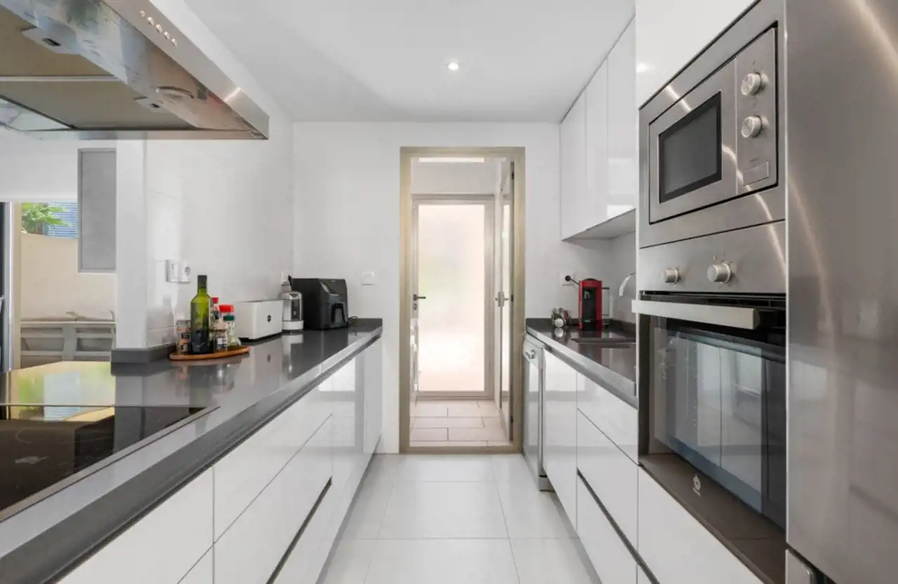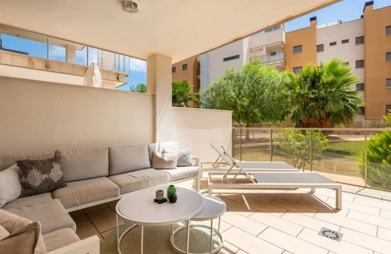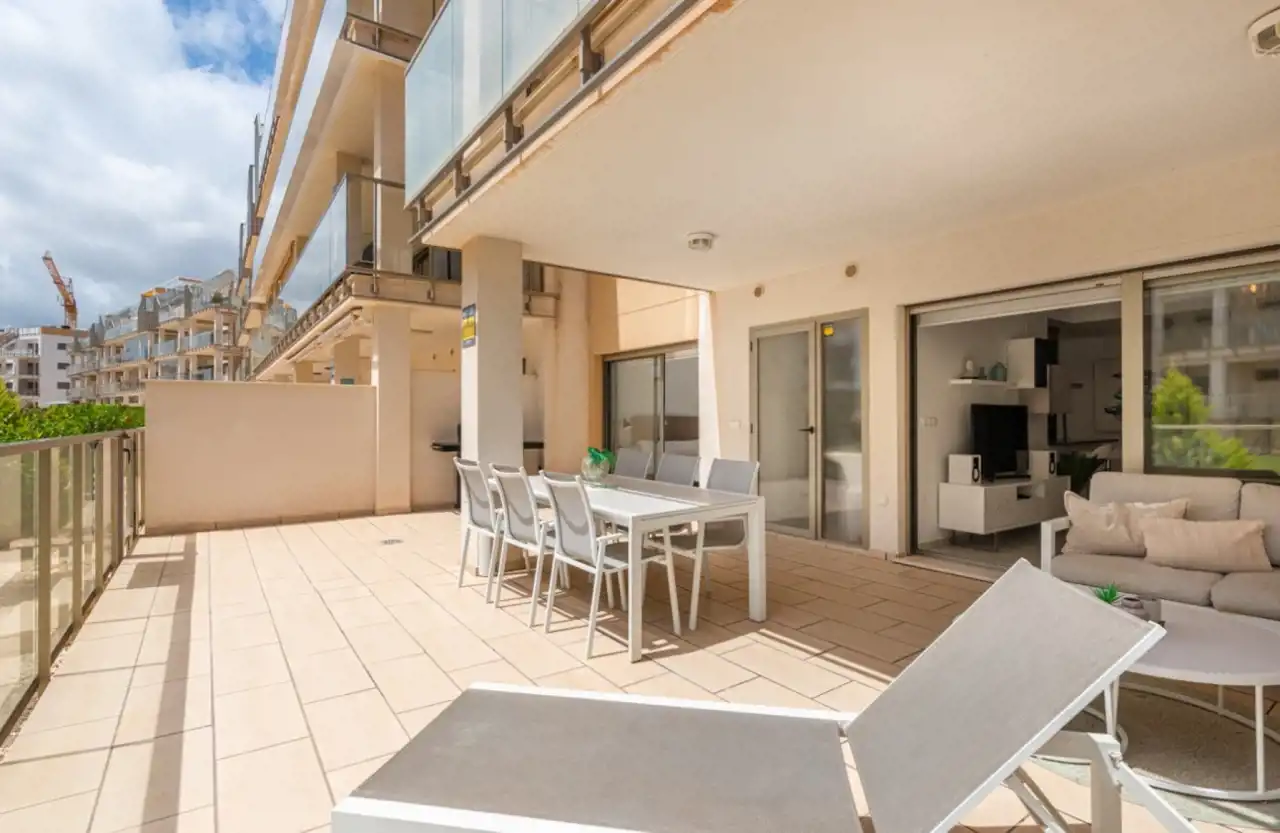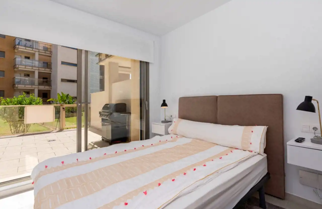 Apartament z 2019r., na zamkniętym osiedlu z basenem i terenami rekreacyjnymi. Jest zlokalizowany na parterze, posiada bardzo przestronny taras, w cenie z miejscem garażowym i umeblowaniem.
