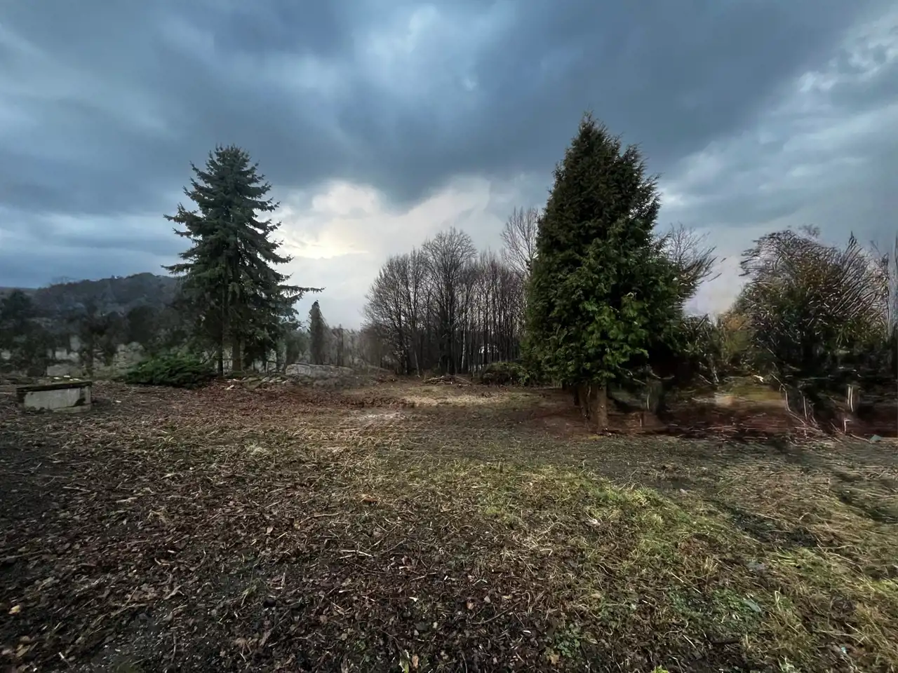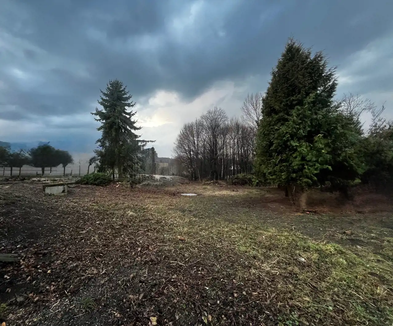- Działka częściowo zagospodarowana, lekko nachylona, prostokąt