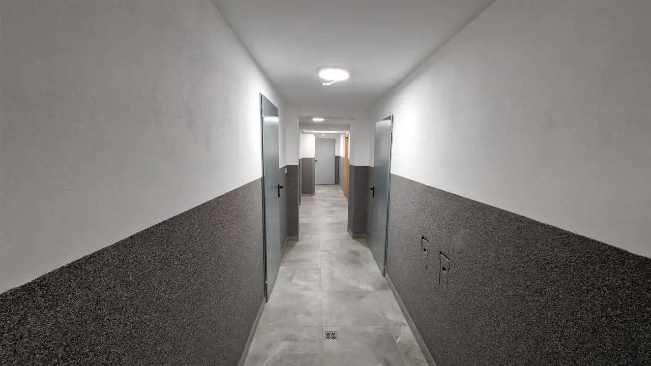 Lokal ma wymiary 4,3mX4,8m, wysokość 2,22m. Drzwi wejściowe zamykane (0,9x2m), 2 okna, na podłodze jest wylewka betonowa, lampa oświetleniowa, 2x gniazdko elektryczne.