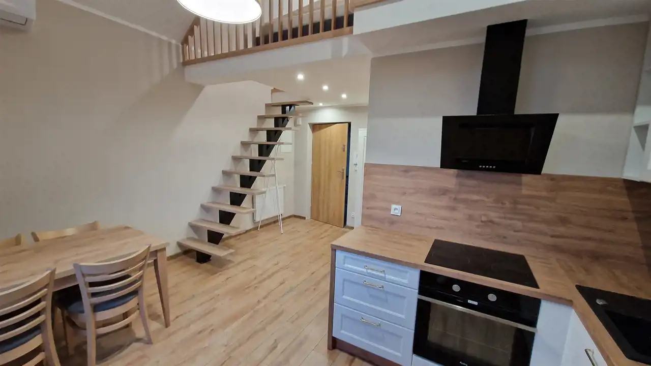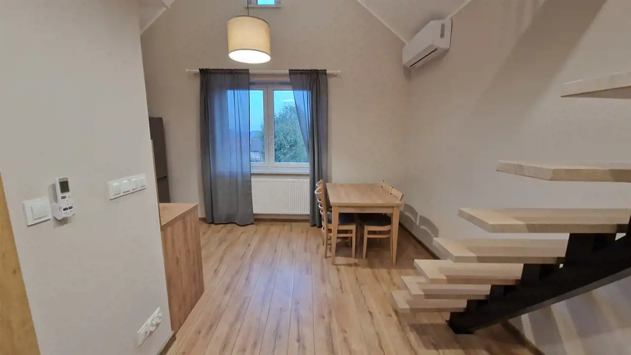Mieszkanie do wynajęcia znajduje się na 2 piętrze (poddasze) i wyposażone jest w klimatyzację. Powierzchnia całkowita mieszkania wynosi ok 31 m2 łącznie z antresolą na której jest sypialnia.