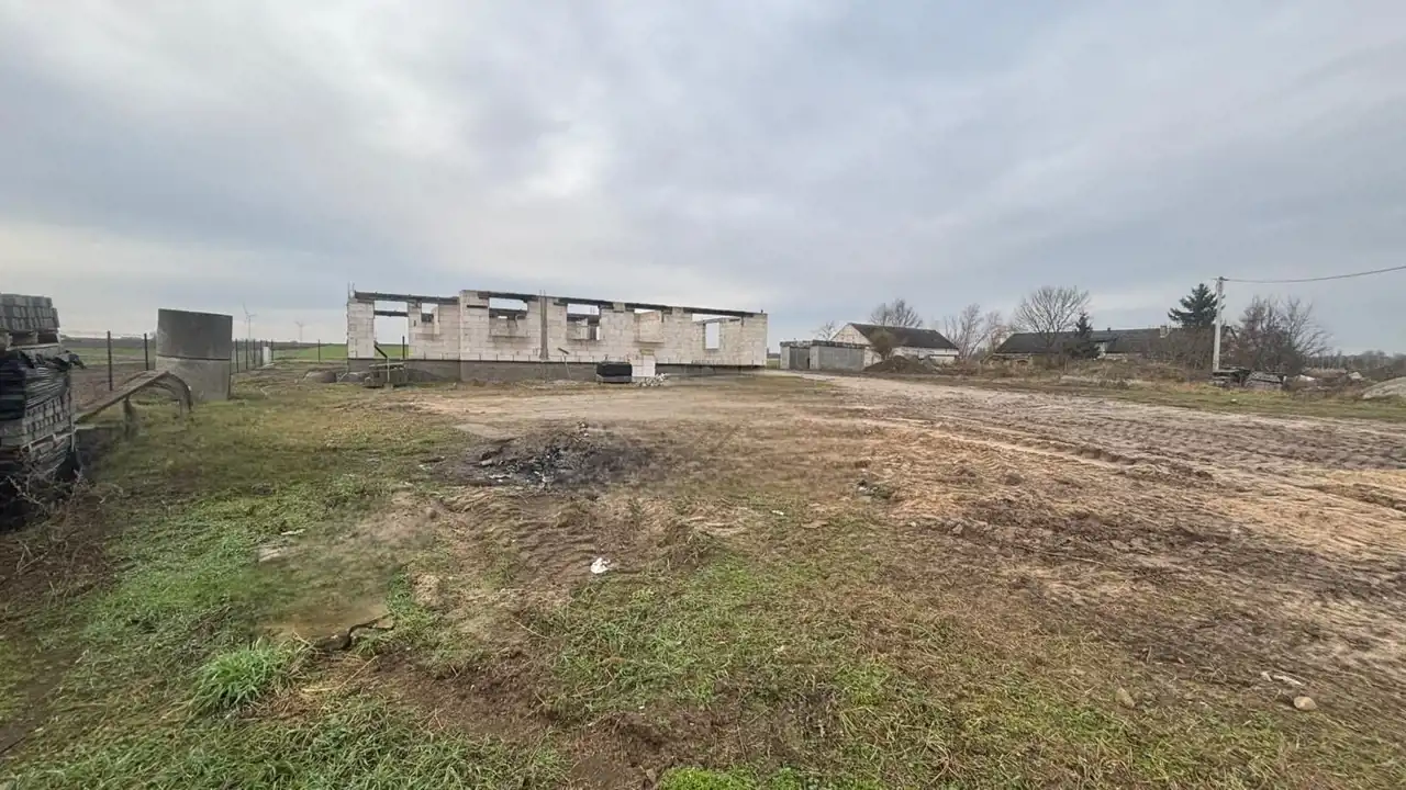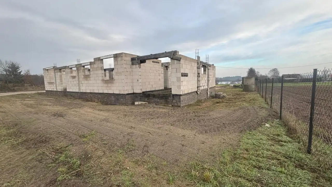 Teren płaski, częściowo ogrodzony. Na sprzedawaną nieruchomość składa się działka z rozpoczętą budową domu jednorodzinnego według projektu Domena 106 A-T o powierzchni 120 m2 . Budowa z aktualnymi wpisami w dzienniku budowy. Stan aktualny budowy to ściany nośne na poziomie parteru z gazobetonu. Ściany fundamentowe z bloczków na ławie fundamentowej. Wszystko wraz z aktualnymi wpisami w dzienniku budowy.