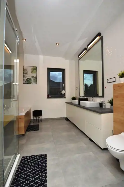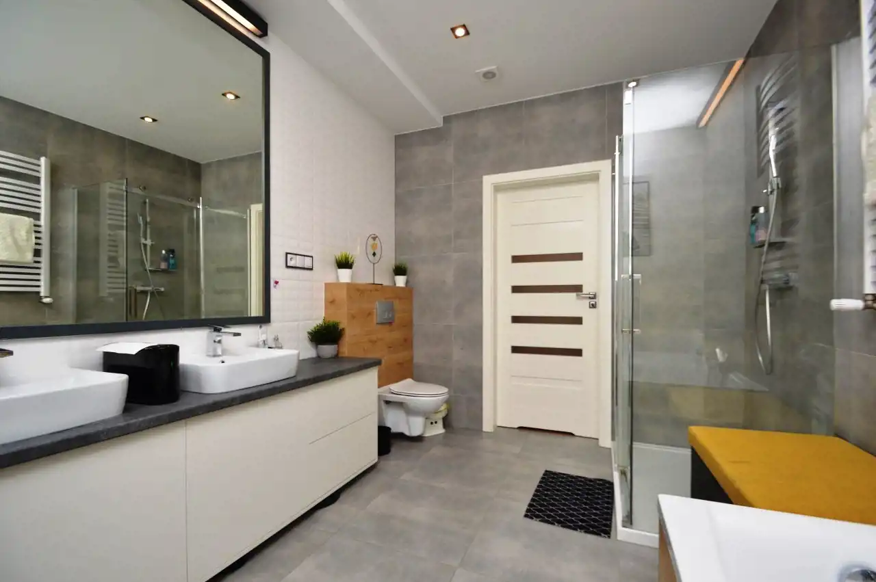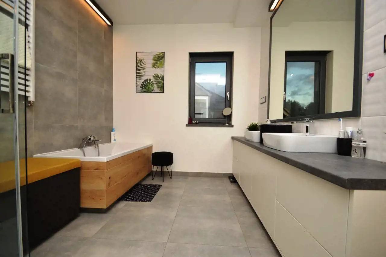 Łazienka o pow. 8,99m2 (wanna, prysznic, umywalka, toaleta, oświetlenie ledowe)