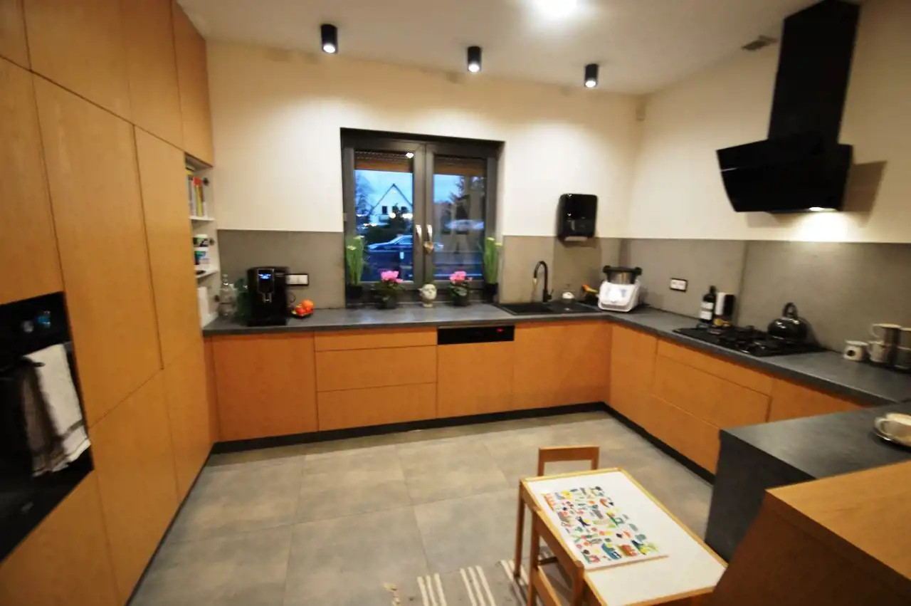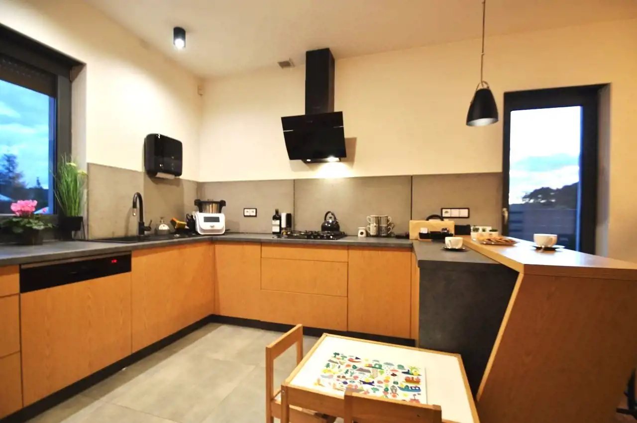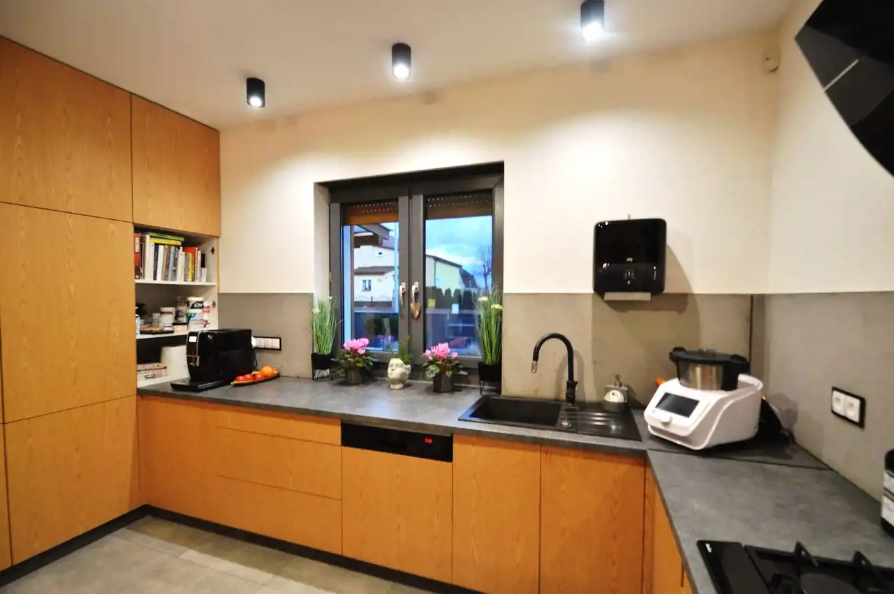 Aneks kuchenny o pow. 11,95m2 - zabudowa kuchenna wraz z sprzętem AGD (lodówko-zamrażarka wolnostojąca, płyta gazowa w zabudowie, piekarnik w zabudowie, pochłaniacz zapachów, zmywarka w zabudowie), okno od strony południowej