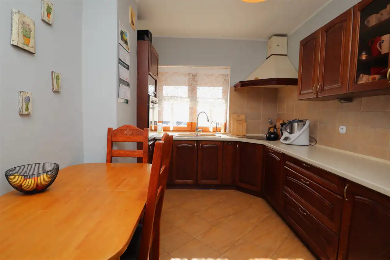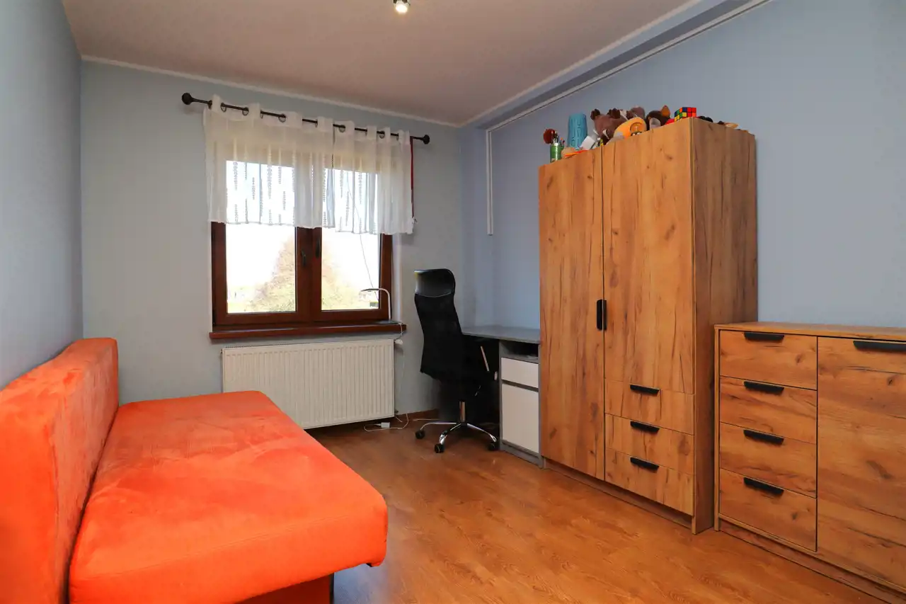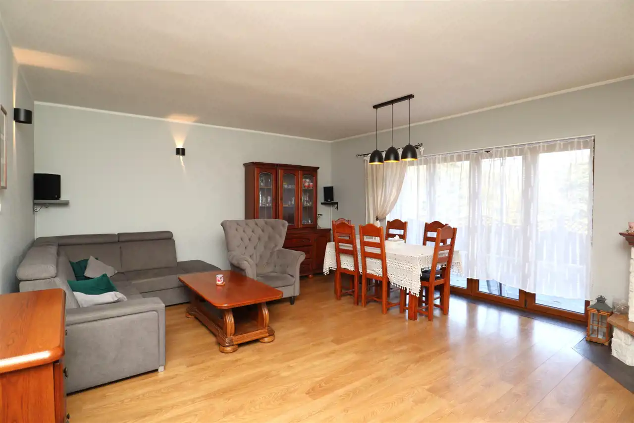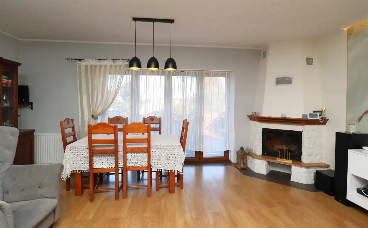 Dom jest ładnie zaaranżowany, utrzymany w dobrym standardzie – wnętrza są spójne, przytulne i praktyczne. Dach pokryty na blachodachówką. Okna PCV + rolety zewnętrzne. Nieruchomość nie wymaga żadnych nakładów finansowych – można się wprowadzić od razu.