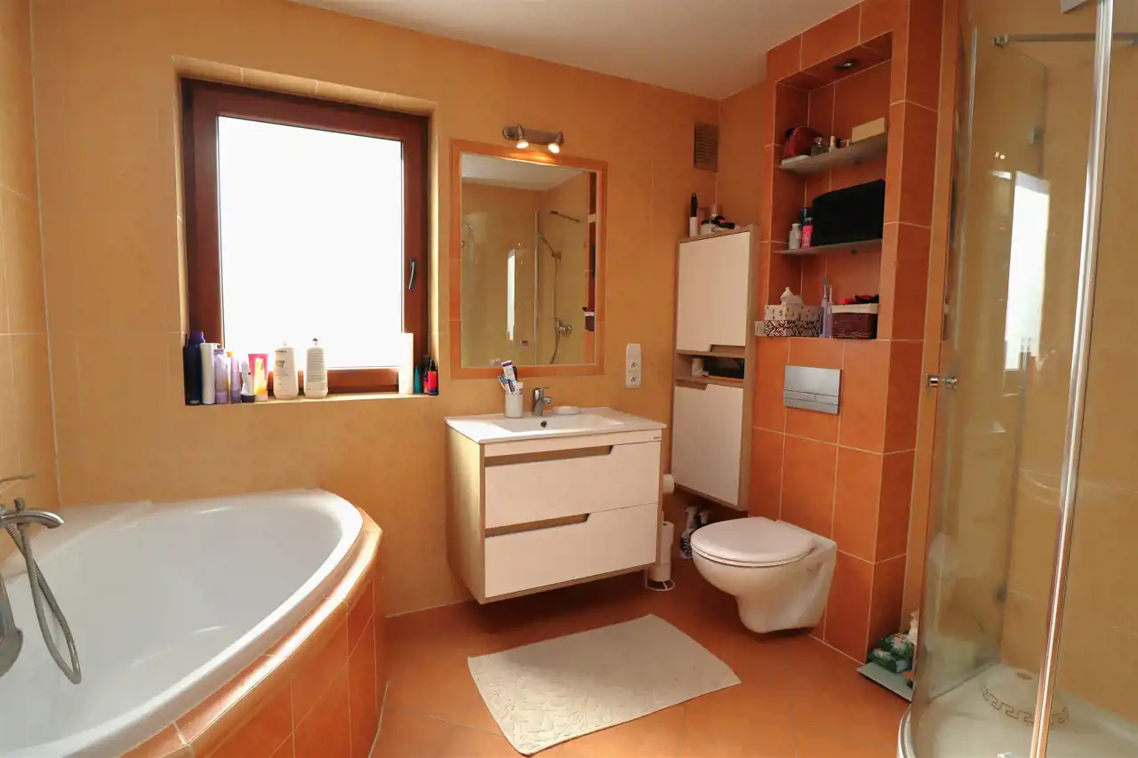 - łazienka z WC wyposażona w wannę i w prysznic, pow. 6,4m², ogrzewanie podłogowe,