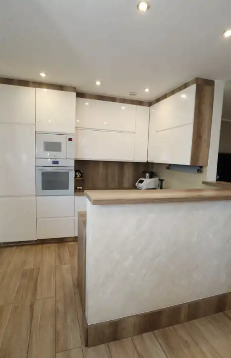 - oddzielna, jasna kuchnia z jadalnią (14,4 m²), w cenie zabudowa kuchenna oraz AGD (zmywarka, piekarnik, zamrażalka, lodówka, pochłaniacz pary, płyta gazowa),