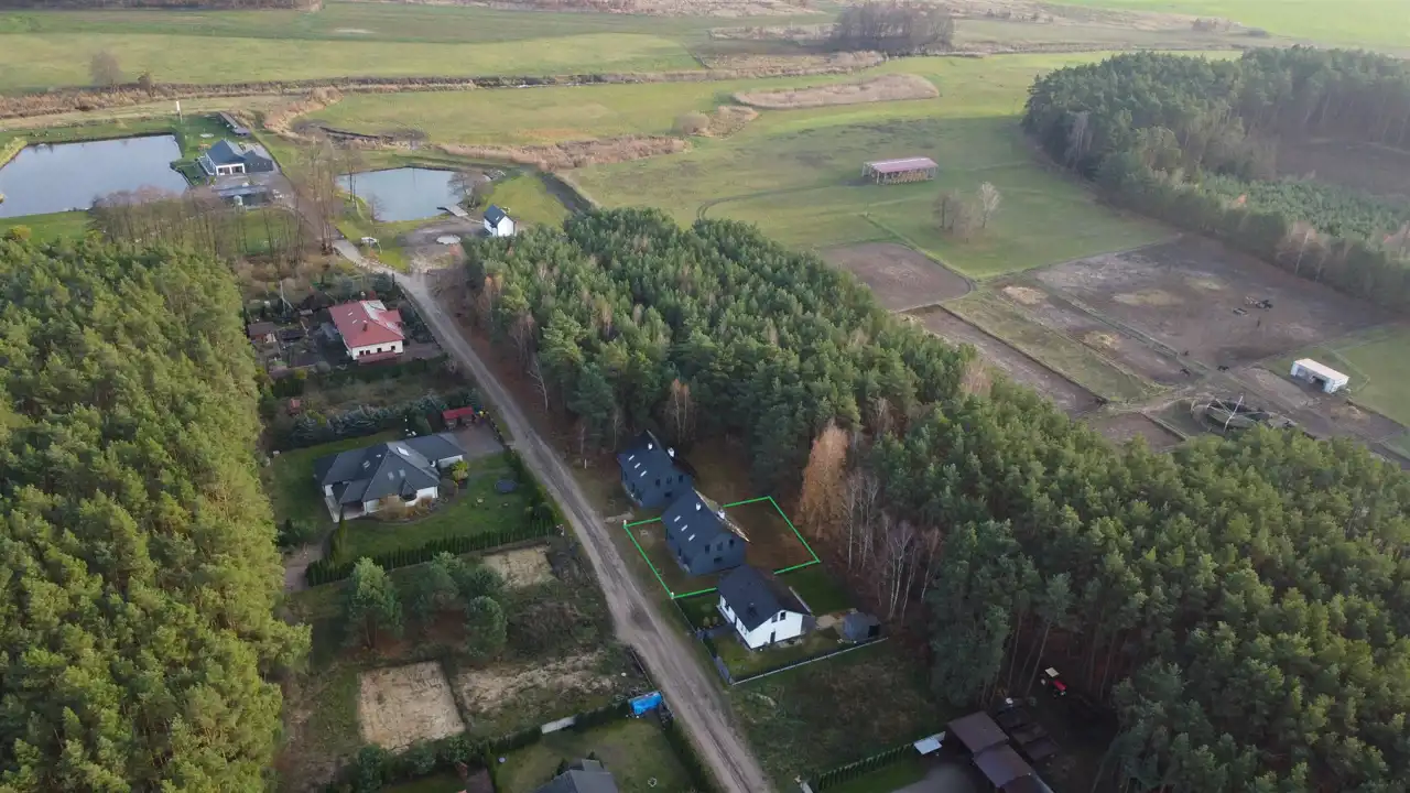 LOKALIZACJA: Wiatrowo Las - 5 km od Wągrowca, 10 km od Rogoźna Wielkopolskiego. Bezpośrednie sąsiedztwo lasu – idealne na spacery, bieganie lub relaks na łonie natury. Bliskość infrastruktury – sklepy, szkoła i komunikacja w zasięgu kilku minut.