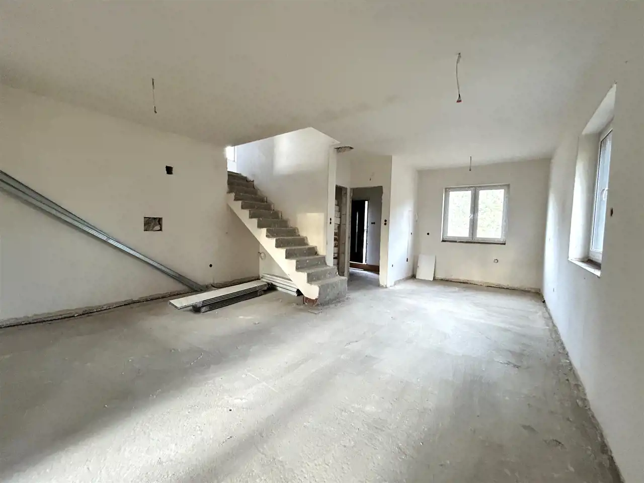 Przestronny i funkcjonalny układ pomieszczeń. Stan: do wykończenia widoczny na zdjęciach. W budynku rozprowadzone są instalacje elektryczne i wodno- kanalizacyjne. Istnieje możliwość wykończenia centralnego ogrzewania podłogowego (cena do uzgodnienia).