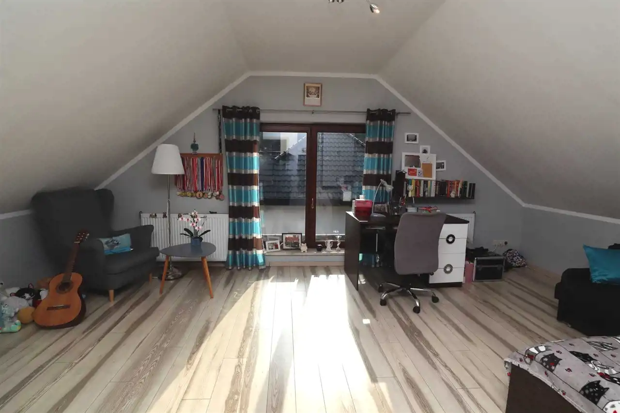 Funkcjonalny rozkład pomieszczeń zapewnia wygodę codziennego życia oraz możliwość aranżacji przestrzeni według własnych potrzeb.