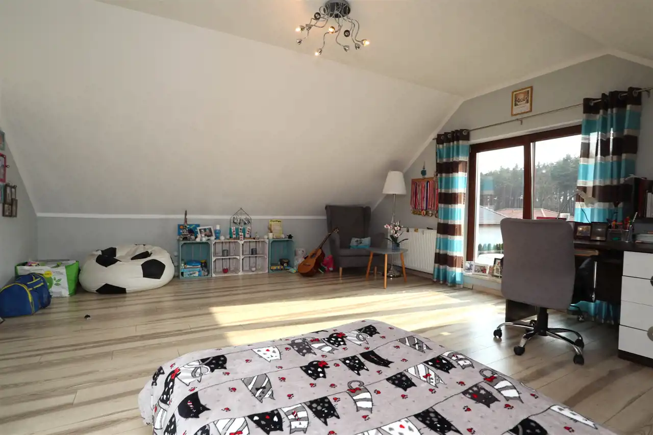 Dom położony jest tuż przy lesie, dzięki czemu każdego dnia możesz cieszyć się ciszą, świeżym powietrzem i pięknymi widokami. To doskonałe miejsce dla rodzin, osób pracujących zdalnie oraz wszystkich, którzy chcą zamieszkać z dala od miejskiego zgiełku, ale wciąż blisko Wągrowca.