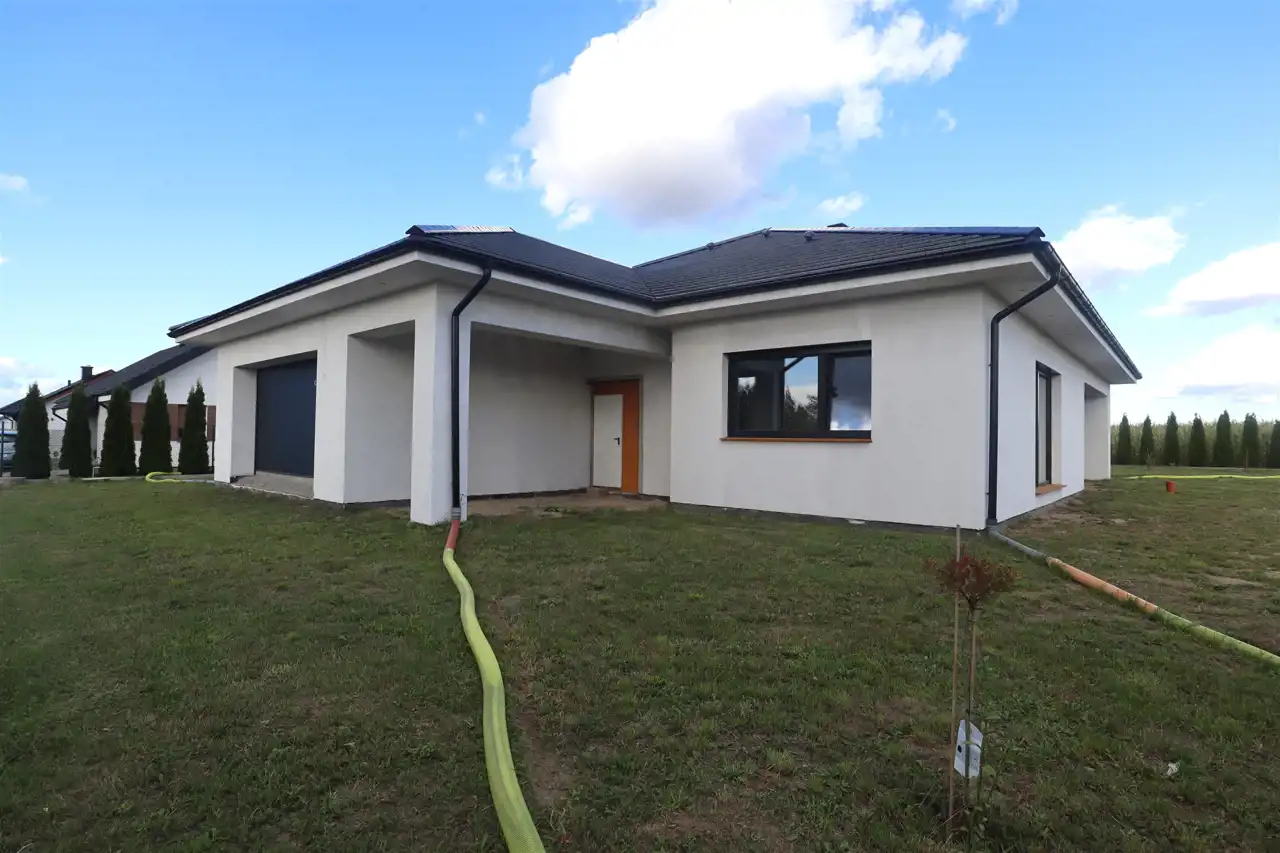 Budynek znajduje się na ogrodzonym terenie o pow. 1674m2. Ogród częściowo zagospodarowany- obsadzeniami z tui. Kropelkowy system nawadniania istniejących zasadzeń.Parametry domu: