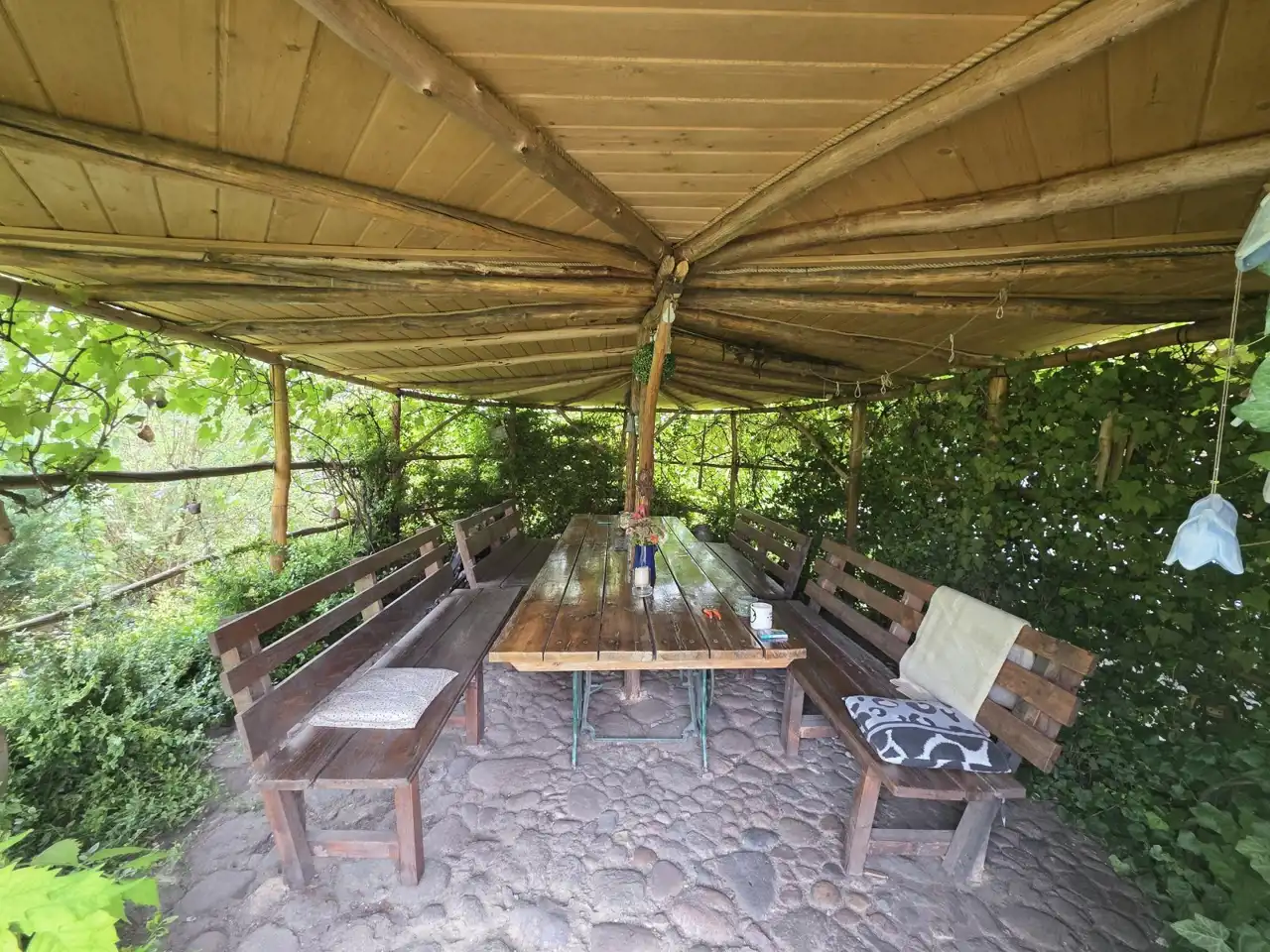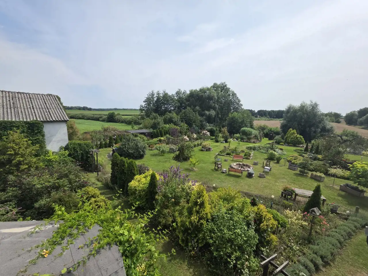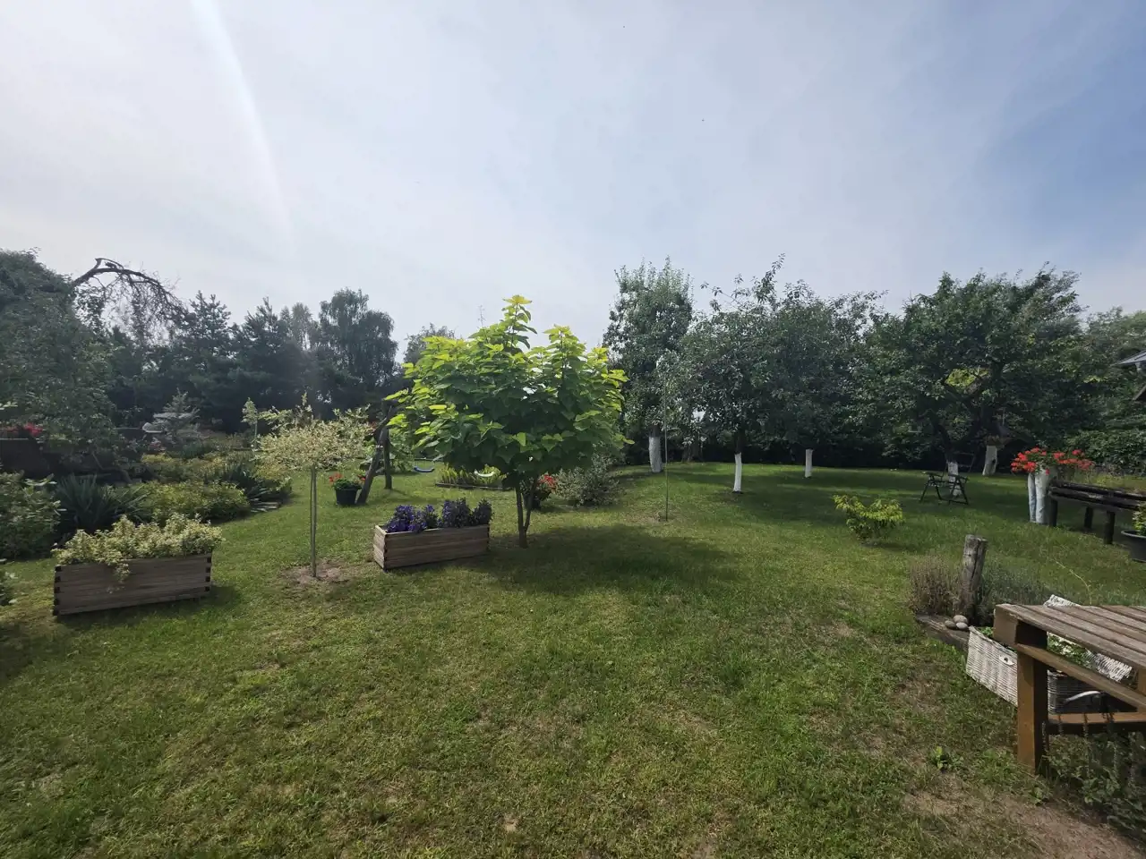 Działka która jest przedmiotem oferty częściowo jest przeznaczona na uprawę polową a częściowo zagospodarowana jako ogród. Liczne nasadzenia w bardzo dobrym stanie, krzewy i kwiaty ozdobne, drzewa owocowe, folia ogrodowa z warzywami, zagroda dla kur, altana grillowa, oczko wodne