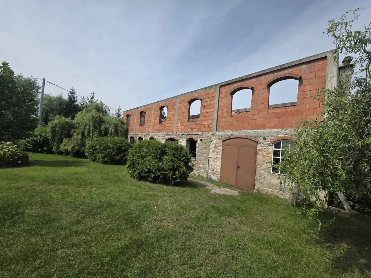 Działka zabudowana jest budynkiem mieszkalnym z 2 mieszkaniami, stodołą (190m2) oraz budynkiem gospodarczym (91m2). Dachy na budynkach gospodarczych wymenione w 2025r. na blachodachówkę.