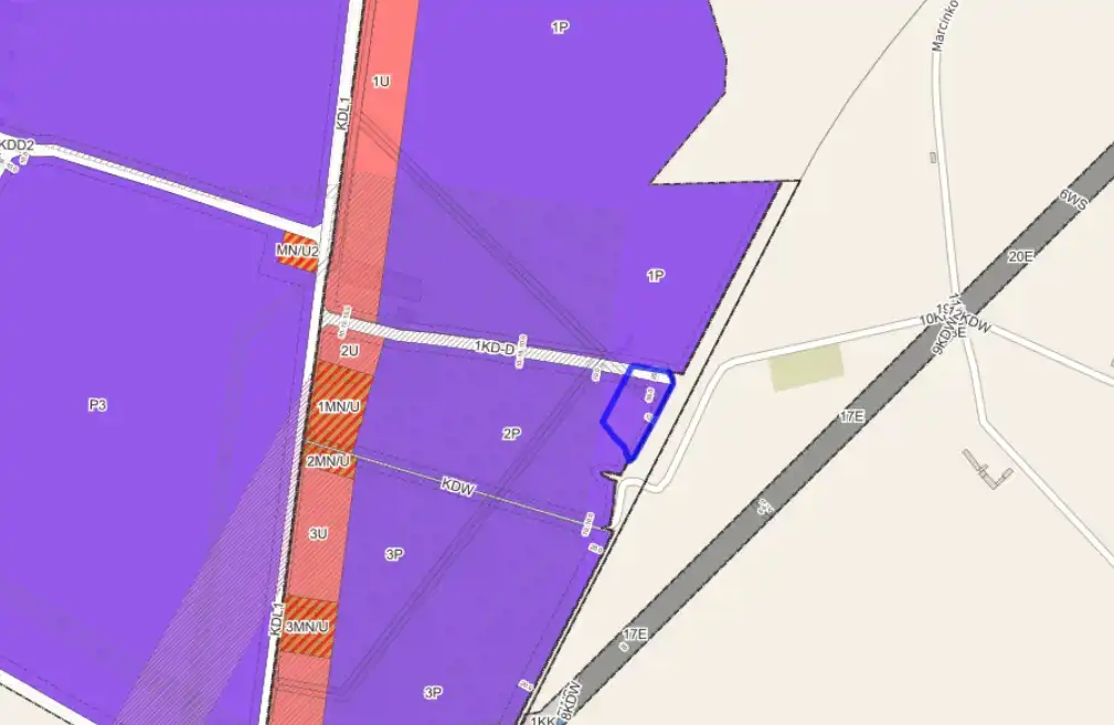 - 1KD-D – teren dróg wewnętrznych (800 m²)