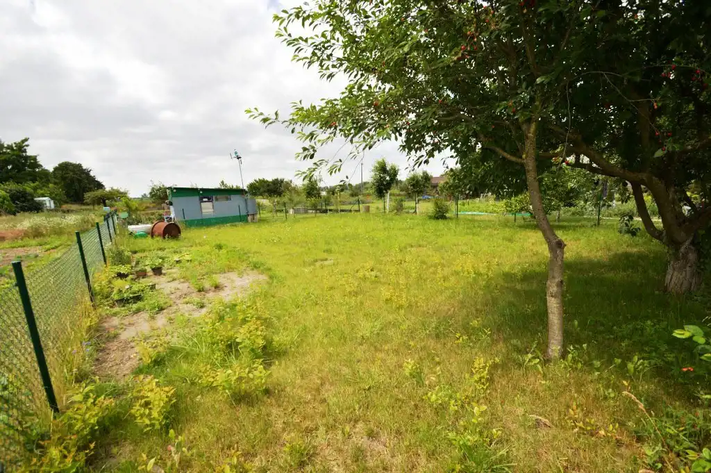 Działka ogrodowa niedaleko bloku, ogrodzona, z przyłączem wody (rozliczenie roczne) i nasadzeniami (wiśnia, śliwka, jabłoń, grusza)