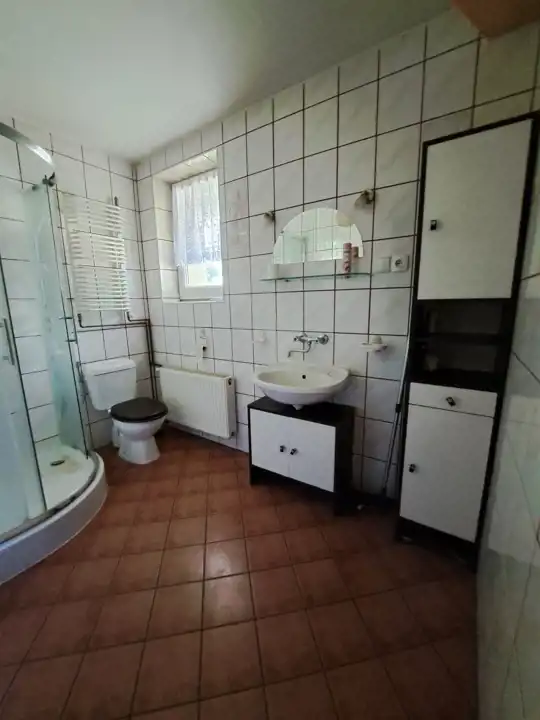 Standard pomieszczeń: stolarka okienna PCV starszego typu, na ścianach gładzie, tynki i boazeria , na podłogach panele i kafle, instalacje częściowo wymienione.
