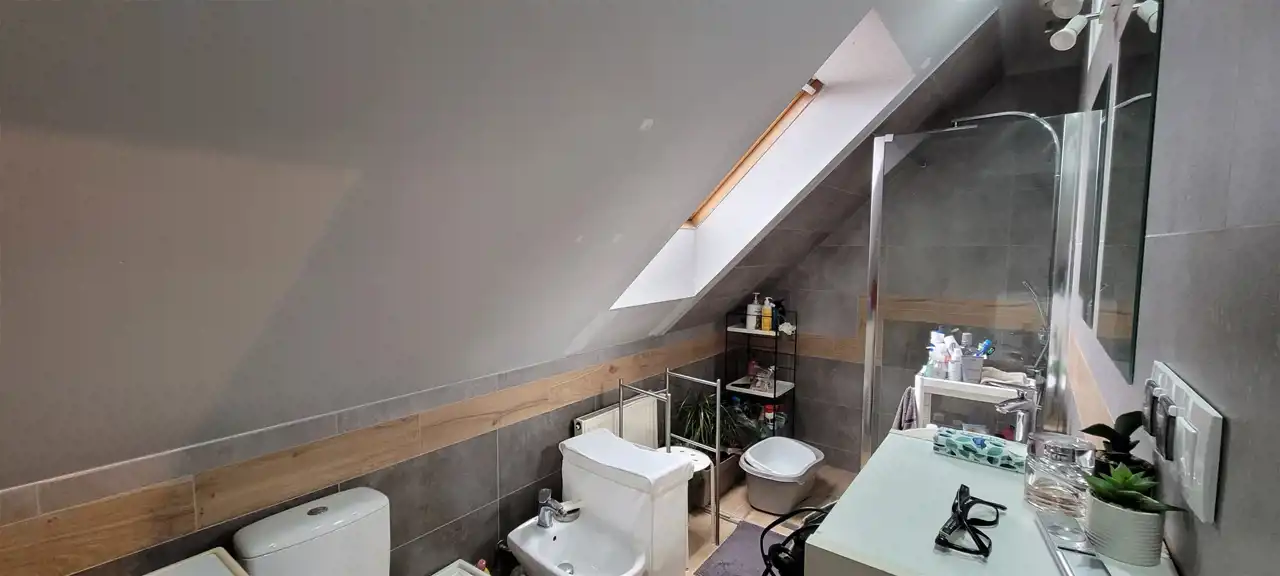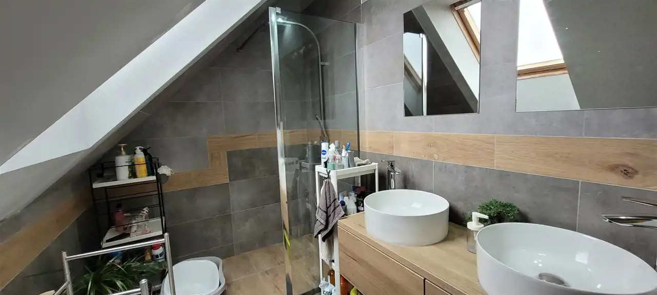 PODDASZE - składa się z kuchni z jadalnią, salonu, trzech sypialni, łazienki z WC
