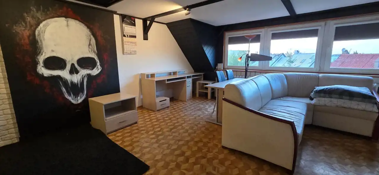 klimatyczne pomieszczenie idealne na biuro, pracownię lub pokój rekreacyjny