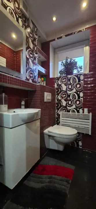 - Media Ogrzewanie: C.O. Z SIECI MIEJSKIEJ; Woda: ciepła - piecyk gazowy; Kanalizacja: miejska; Prąd: jest; Gaz: jest