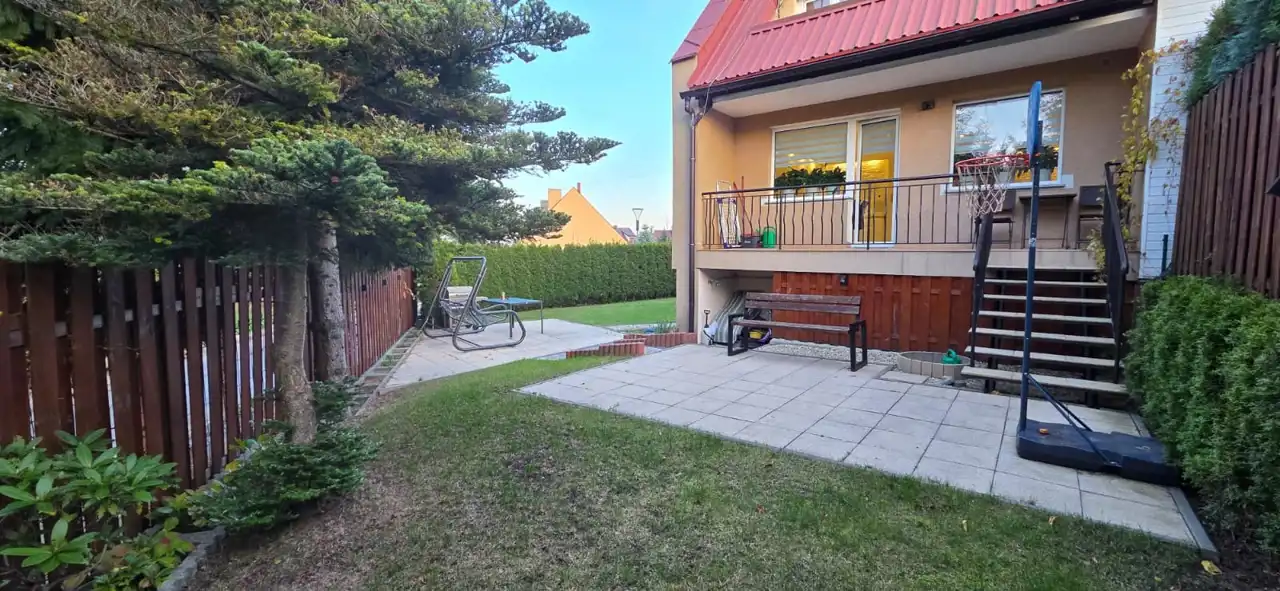 To skrajny segment szeregowca, który dzięki oddzieleniu garażami od sąsiadów funkcjonuje niemal jak dom wolnostojący.