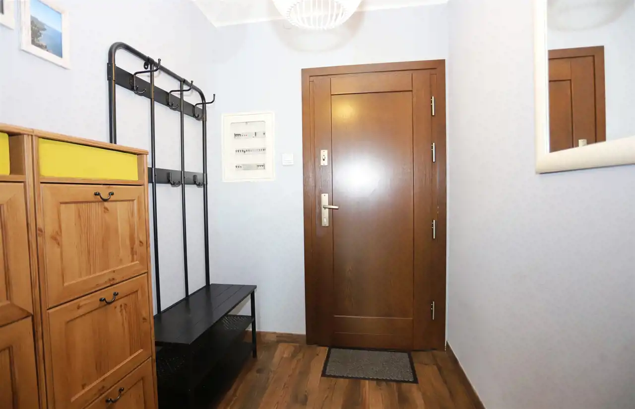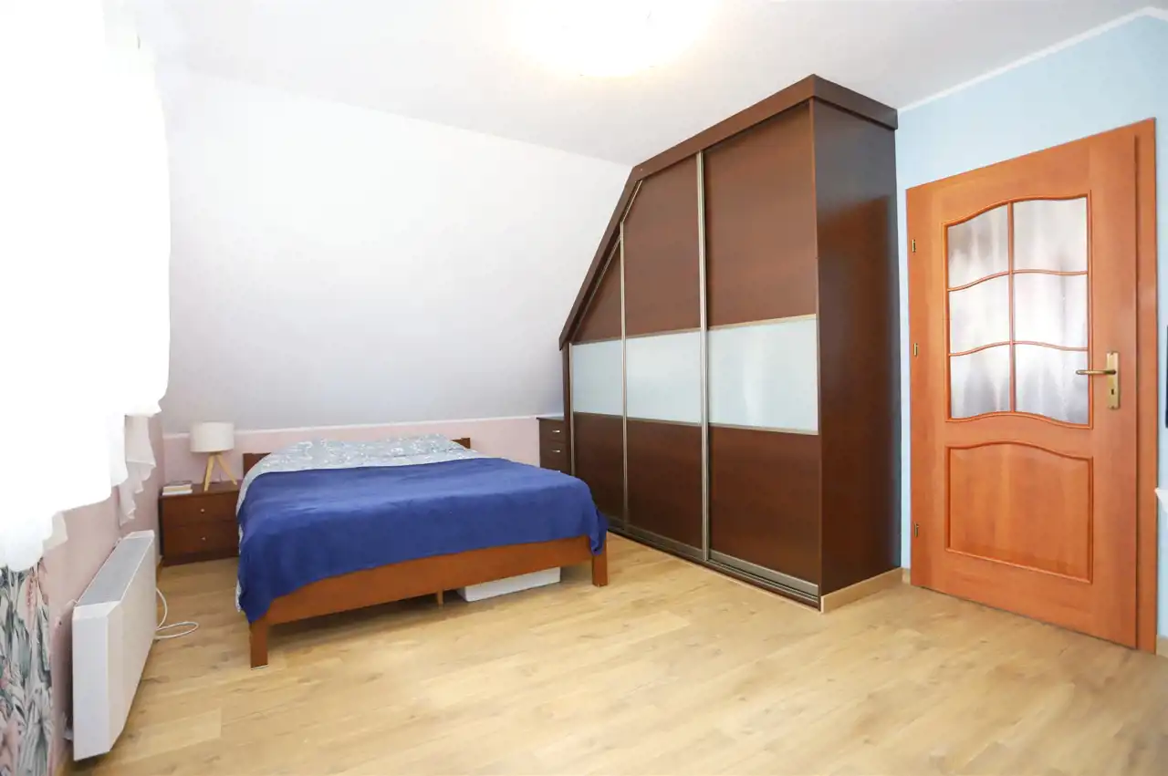 - mniejszą sypialnię, obecnie zaaranżowaną na pokój dziecięcy,