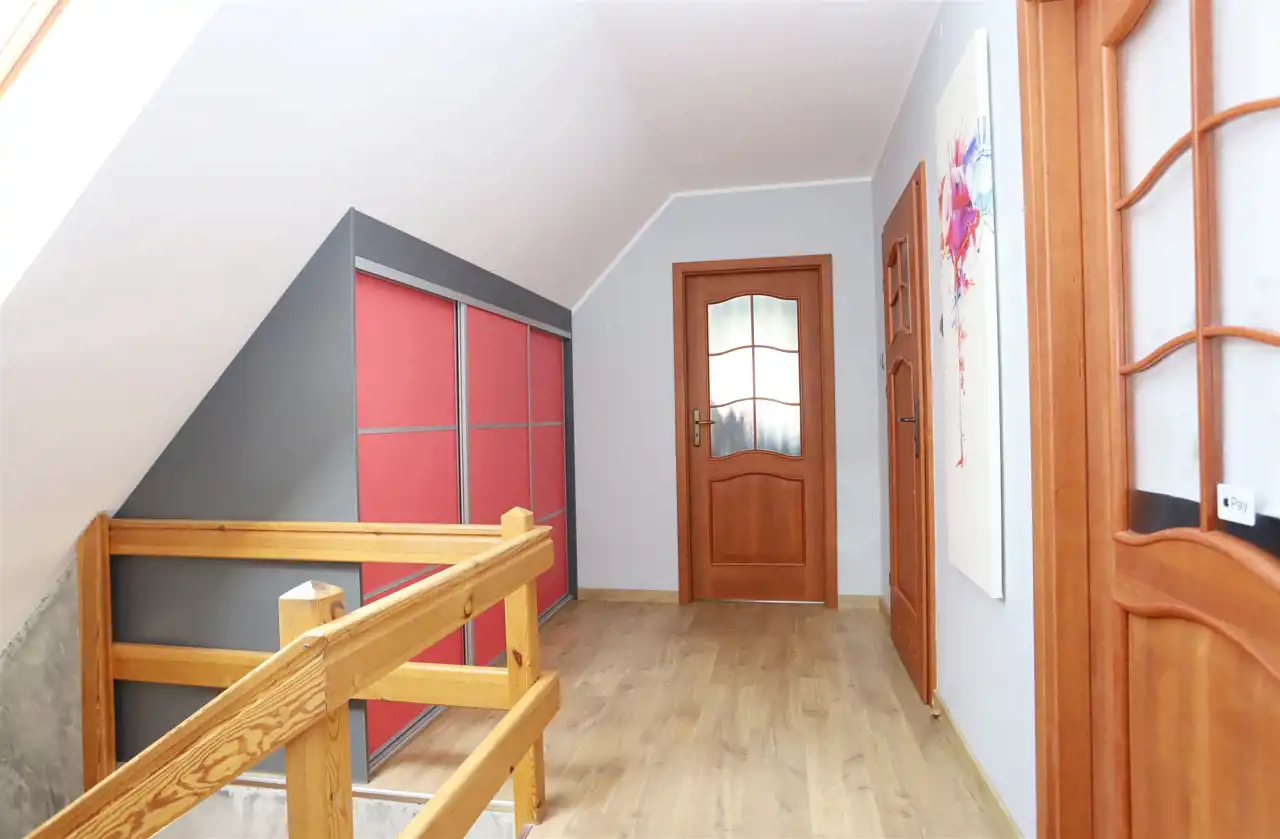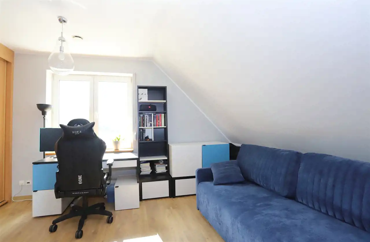 - mniejszą sypialnię, obecnie zaaranżowaną na pokój młodzieżowy,