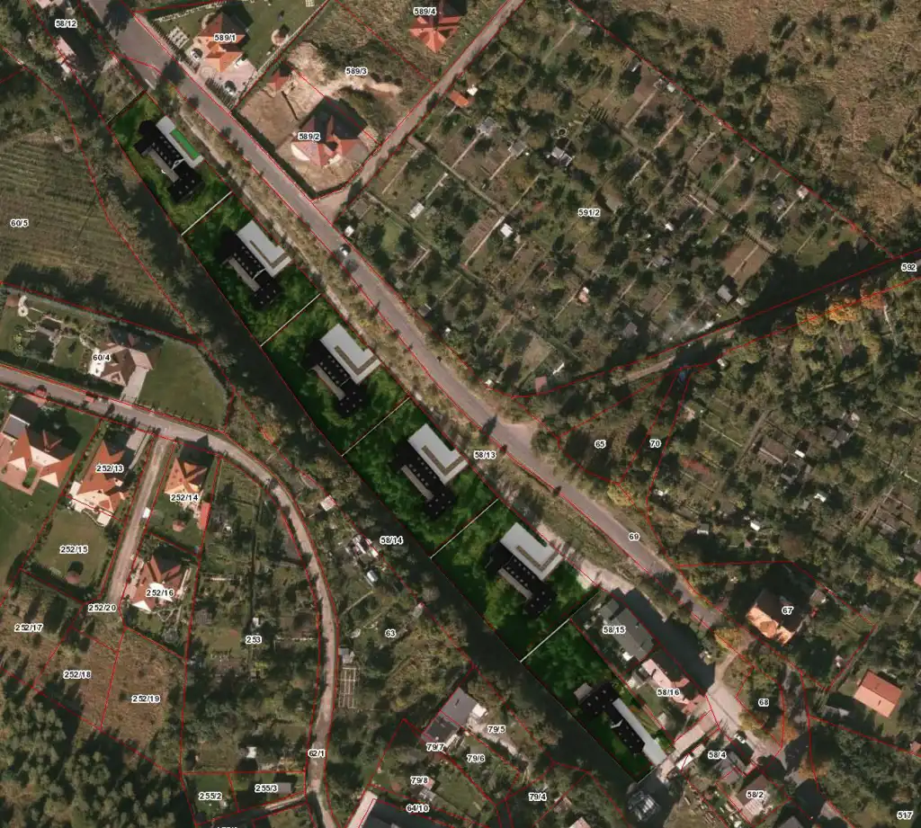 Dostęp do działki poprzez drogę, stanowiącą komunikację wewnętrzną oznaczoną w ewidencji gruntów jako działka nr 58/13. Możliwość wykupu sąsiednich działek.