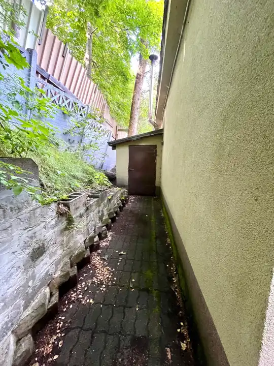do obiektu został dobudowana, sporej wielkości, zamykana wiata oraz szopa.