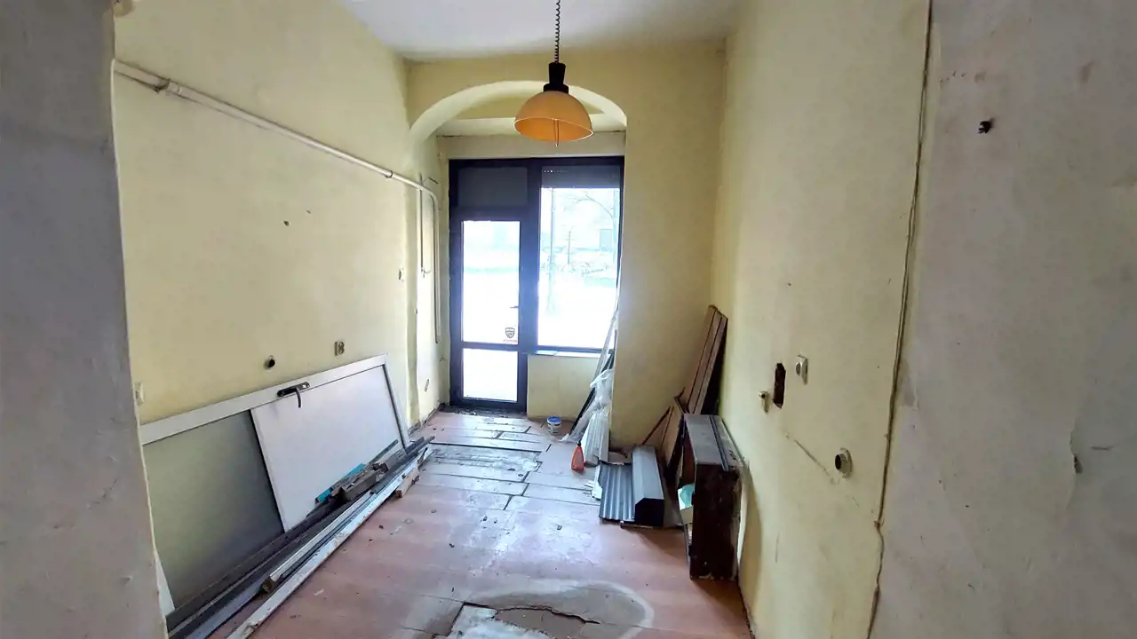 Obecnie lokal podzielony na dwa. Większy lokal 30m2 w stanie dobrym - wymaga jednak odświeżenia, przystosowania pod własne potrzeby (łazienka remontu). Mniejszy lokal 16m2 wymaga remontu. Obecnie brak ogrzewania, kiedyś elektryczne.