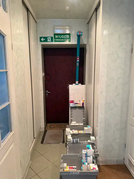 Za apteką znajduje się prywatny parking dla mieszkańców i apteki