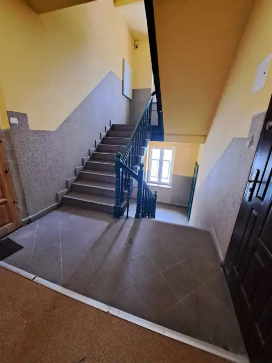 Kamienica z odnowioną elewacją, klatka schodowa po remoncie z wymienioną instalacją gazową i elektryczną dodatkowo objęta monitoringiem co zwiększa bezpieczeństwo i komfort mieszkańców.