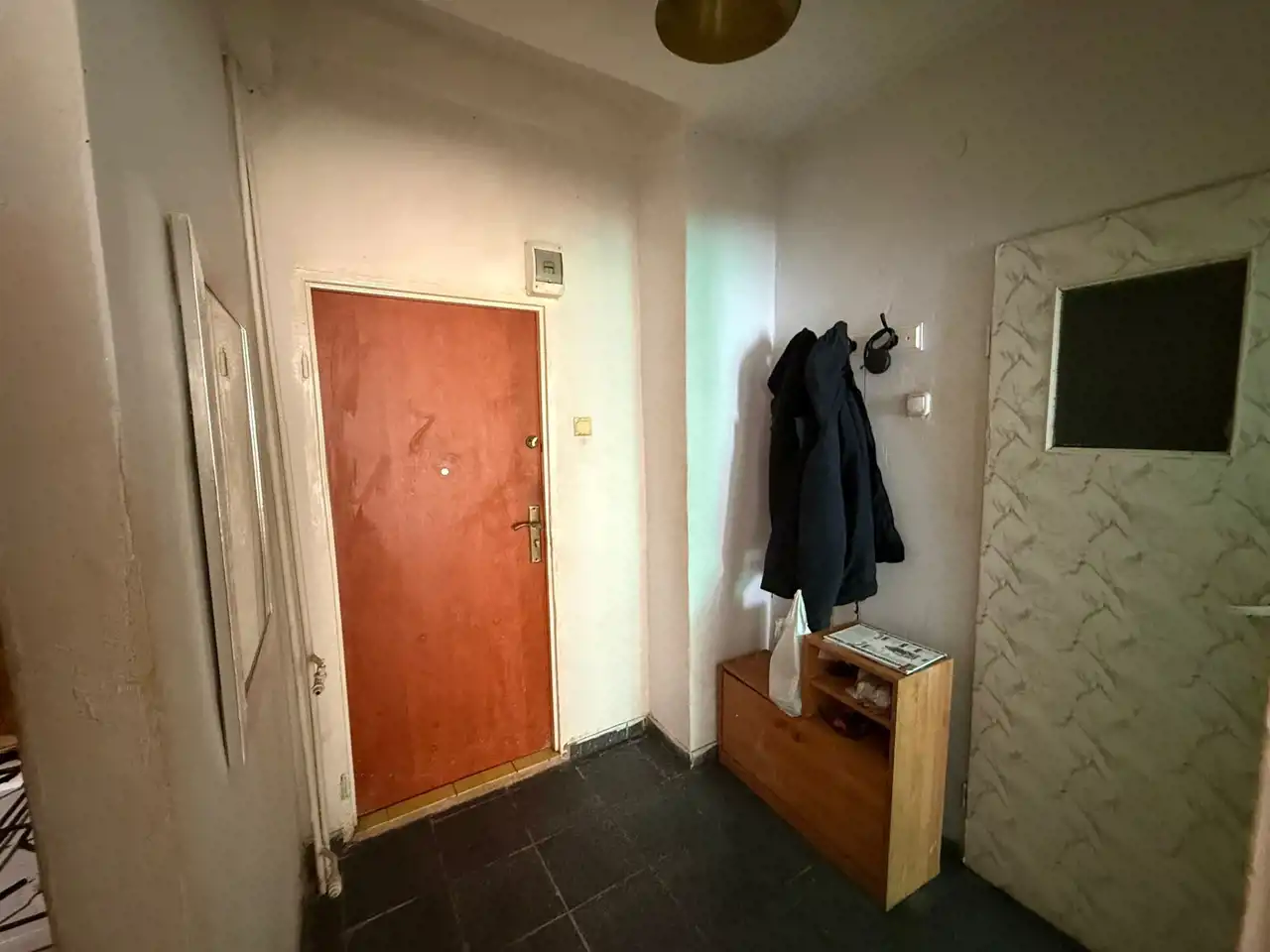 Mieszkanie wymaga remontu, składa się z dwóch pokoi, ciemnej kuchni, łazienki z toaletą oraz przedpokoju.