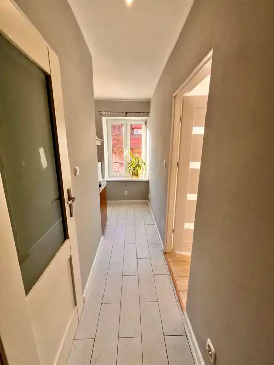 Zaaranżowane z pomysłem, dwupokojowe mieszkanie z kuchnią z oknem , otwartą na przedpokój sprawia wrażenie jasnej przestrzeni.