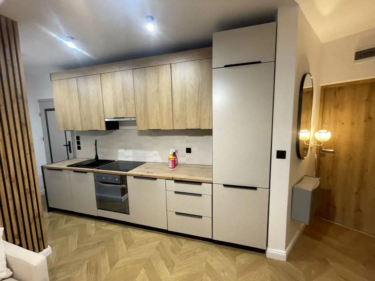 Mieszkanie po generalnym remoncie, urządzone w nowoczesnym stylu, z dbałością o funkcjonalność i estetykę.