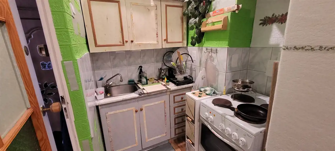 Mieszkanie wymaga remontu, składa się z dwóch pokoi, ciemnej kuchni, łazienki z toaletą oraz przedpokoju.